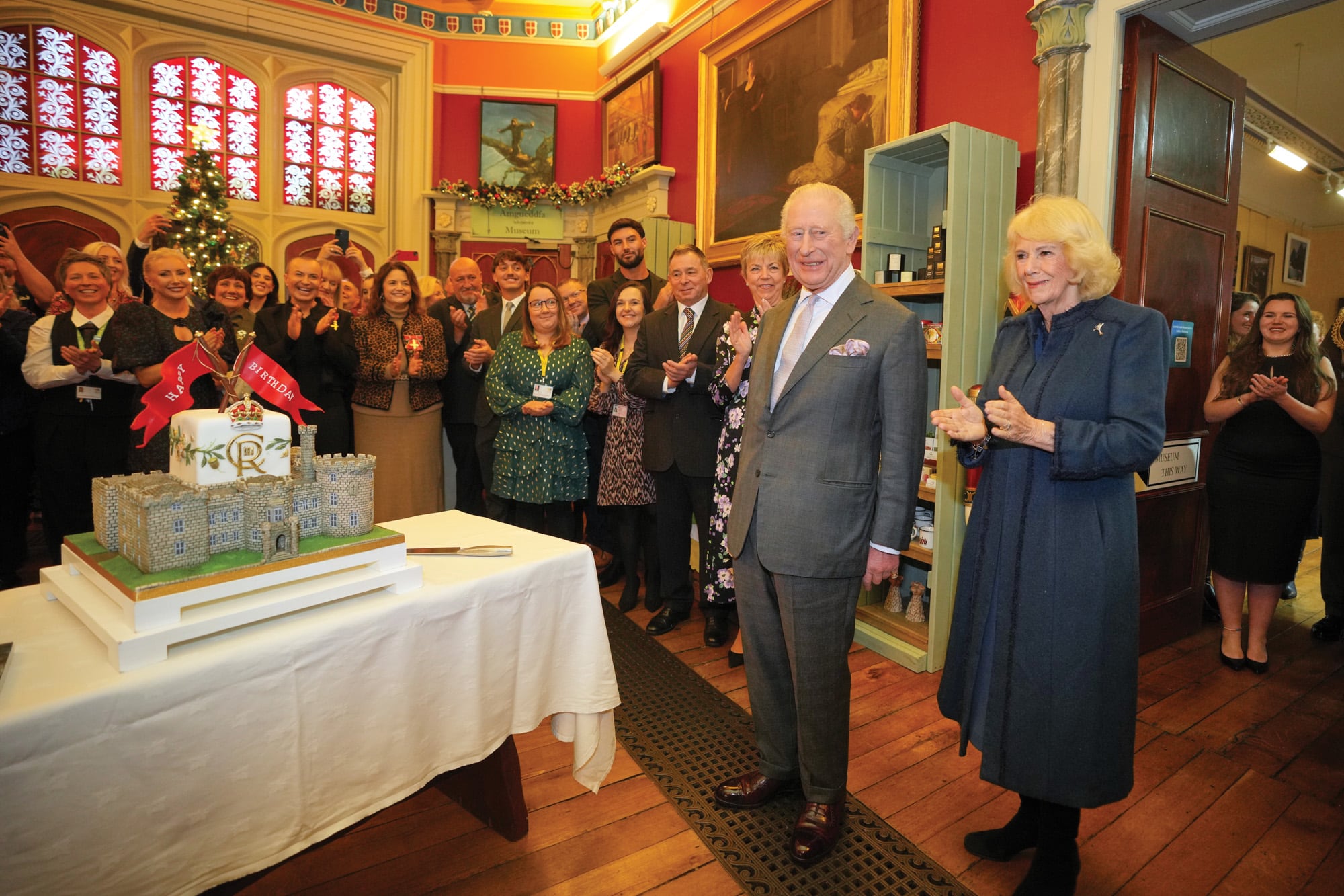 En Merthyr Tydfil, Gales, el Rey fue sorprendido con una original torta con la forma del castillo de Cyfarthfa, una construcción icónica de Gales que este 2025 celebra 200 años. “¡Qué sorpresa tan especial (…)! ¡Una muestra de lo mejor que hacen los galeses!”, escribió Carlos en la cuenta oficial