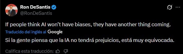 En consecuencia, el mandatario estatal aquejó que la herramienta presenta subjetividades. “Si la gente piensa que la IA no tendrá sesgos, está muy equivocada”, escribió en la red social X.