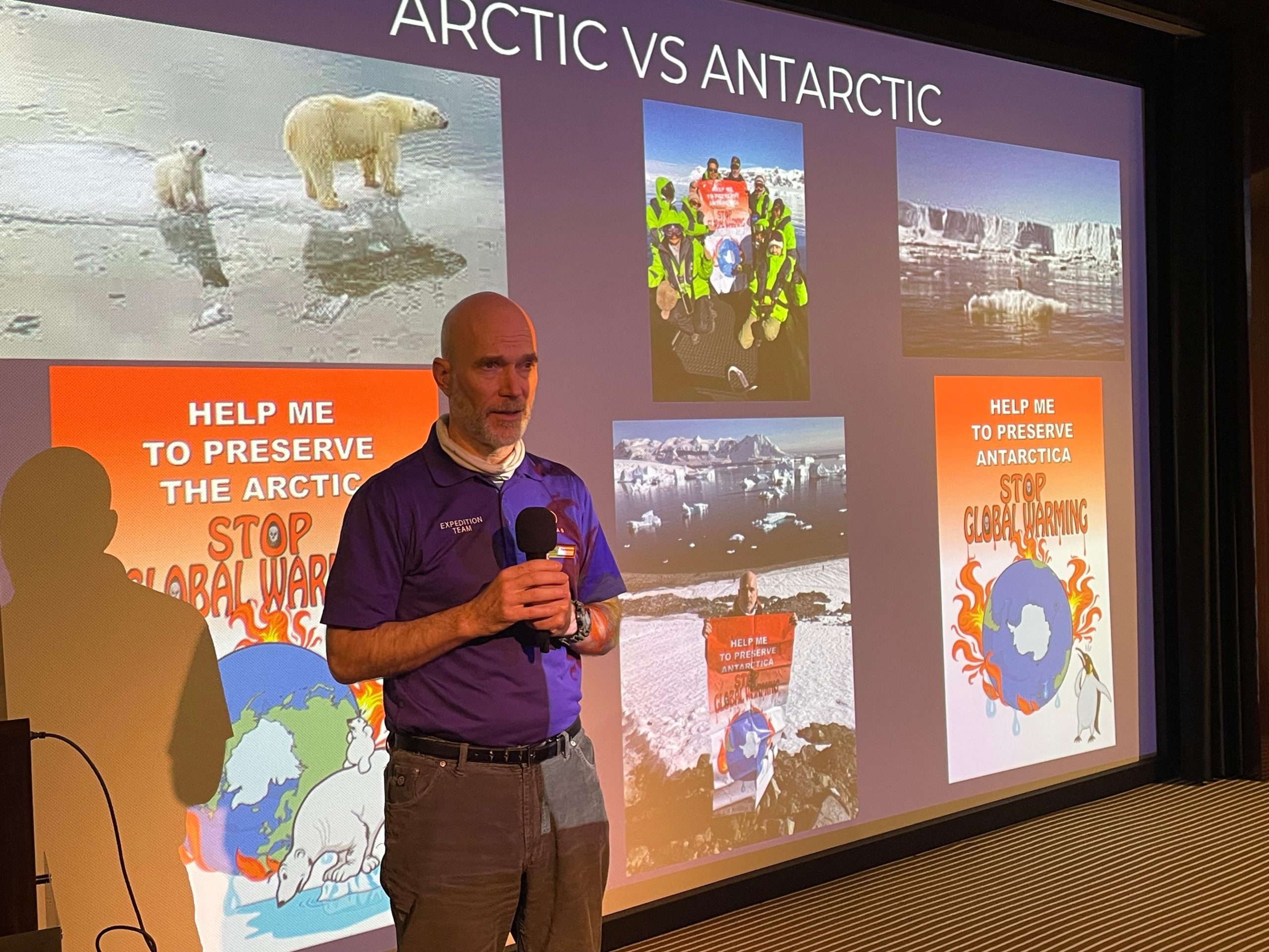 Además de sus expediciones, Fernando imparte clases y conferencias sobre regulaciones antárticas, turismo sostenible y protección de recursos marinos, asesorando también en temas técnicos y legales del sector. Para él, cada clase trasciende lo académico: es una oportunidad vital para abogar por una causa urgente.