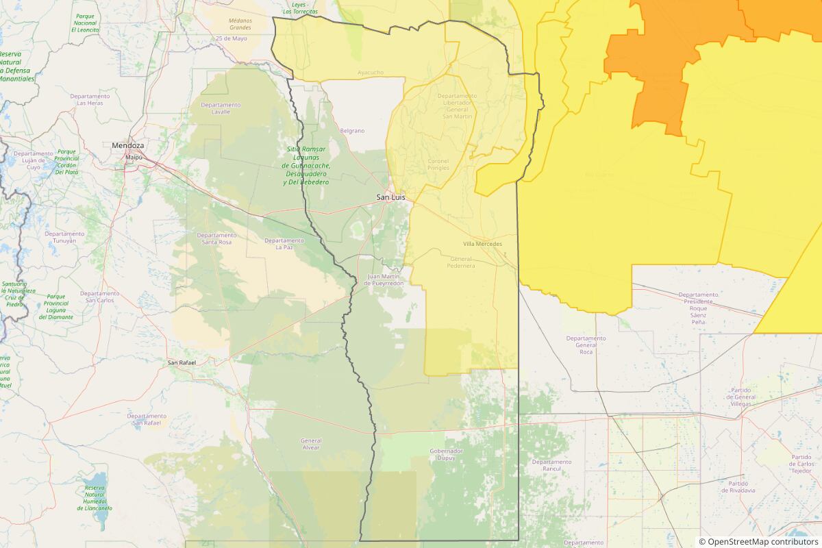 00:04 horas: Alerta amarilla por tormentas en la provincia de San Luis para el jueves 2 de abril, vigente desde las 09:00hs hasta las 14:59hs. Se prevén lluvias y tormentas de variada intensidad, algunas de ellas localmente fuertes. Las condiciones estarán acompañadas por abundantes precipitaciones, con valores estimados de precipitación acumulada entre 30 y 70 mm, que podrían ser superados en forma puntual.