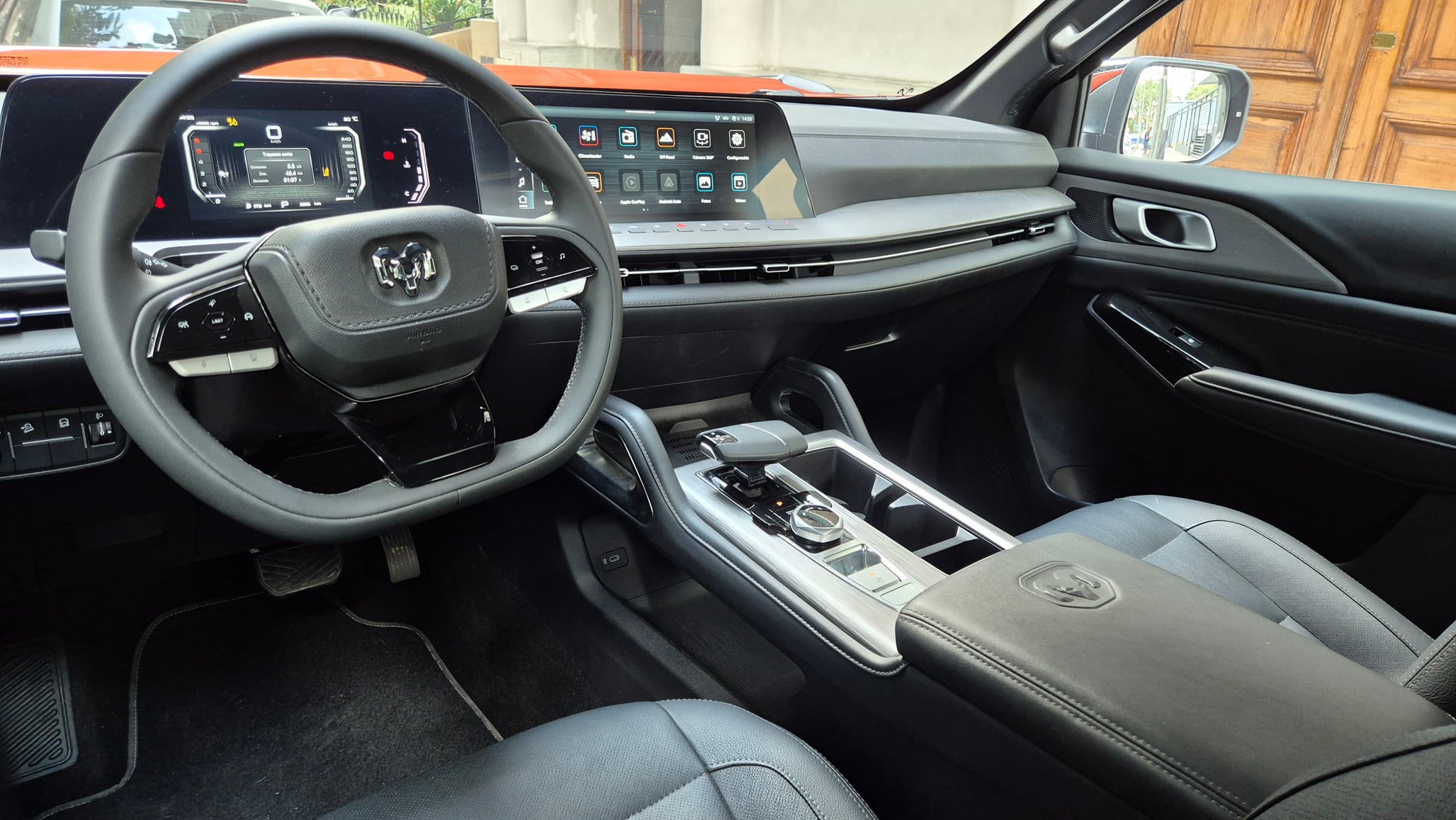 Hay una grata sorpresa en el interior. No solo porque hay una destacada calidad de materiales y terminaciones (cuero, plásticos de tacto suave, mullidos) sino porque también hay un planteo tecnológico dado por las pantallas (la única crítica tiene que ver con la disposición de ellas, ya que reflejan mucho la luz exterior y no permiten una buena visualización).
