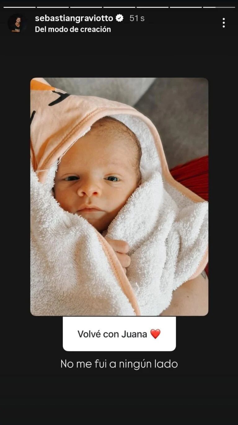 Por su parte, Sebastián Graviotto también usó Instagram para responder a quienes le preguntaron por la relación con Juana y su presencia en la vida de sus hijos. Ante el pedido de retomar la pareja, Graviotto publicó: “No me fui a ningún lado”.