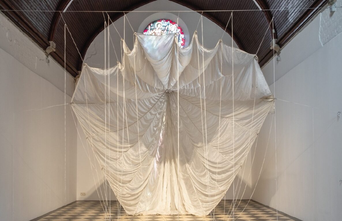 La segunda es Tres actos para caídas fuera de casa, de la artista Francisca Khamis Giacoman. Curada por Soledad García Saavedra, aborda la migración forzada de su familia desde Palestina a Chile, en 1948. Khamis Giacoman realizará la performance Caer ascendiendo, desplegando un paracaídas a partir de instrucciones que contienen la historia de migración de su familia. Participarán junto a ella las performers Paz Marín y Kamille Gutiérrez, con la música en vivo de Eli Wewentxu.