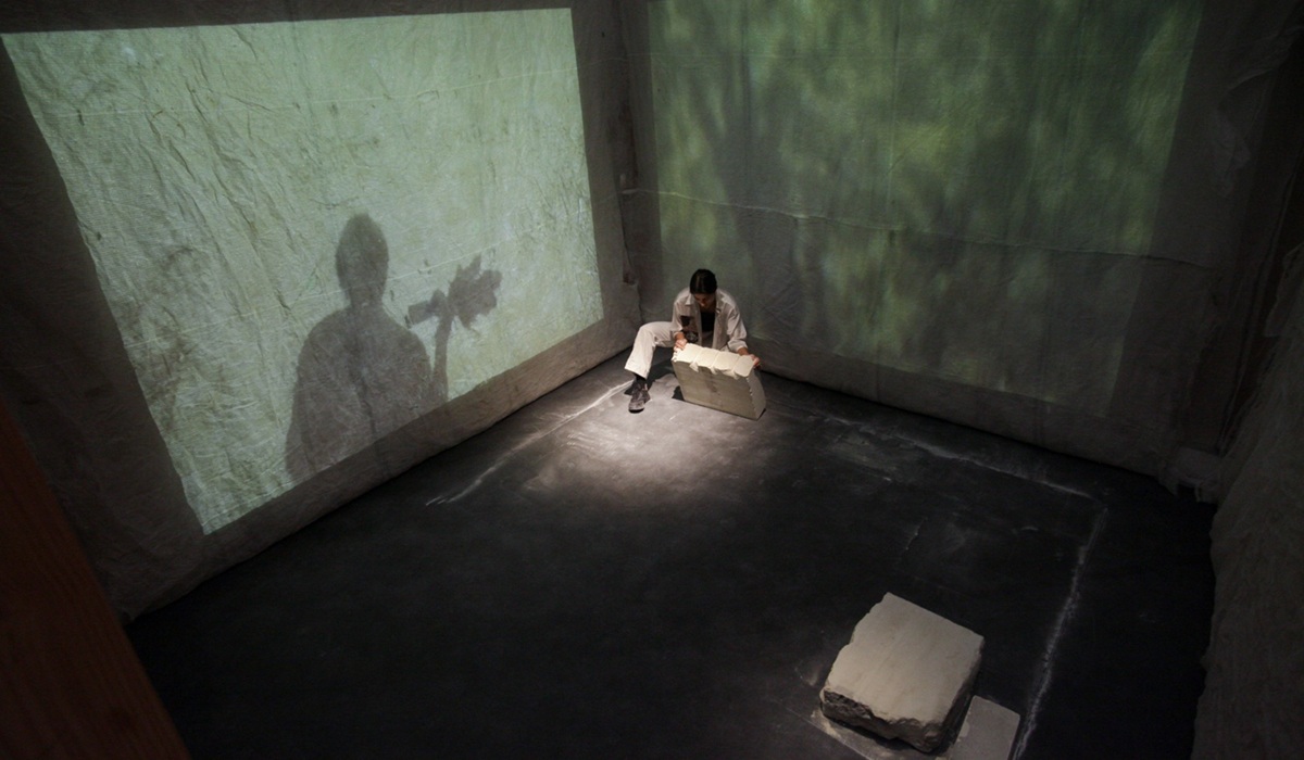 Tres actos para caídas fuera de casa, de Francisca Khamis Giacoman, es una propuesta que aborda el desplazamiento, la herencia familiar y la transmisión intergeneracional. Es un trabajo realizado a partir de la historia de migración forzada de su familia desde Palestina a Chile en 1948.