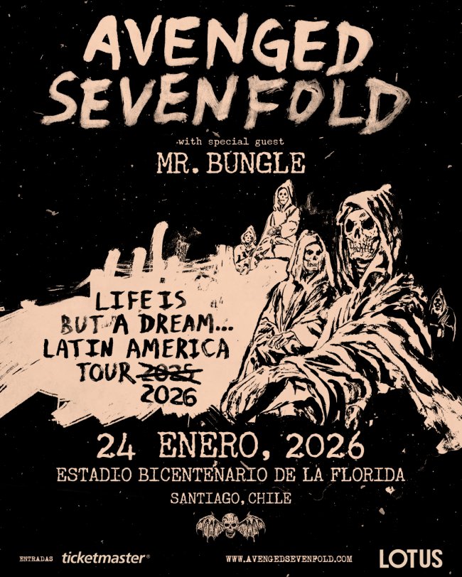 Tras la cancelación del pasado fin de semana, por enfermedad de su vocalista, la banda estadounidense Avenged Sevenfold reprogramó su show en Chile y ahora incluirá a Mr. Bungle, cuyo concierto también se suspendió como «daño colateral».