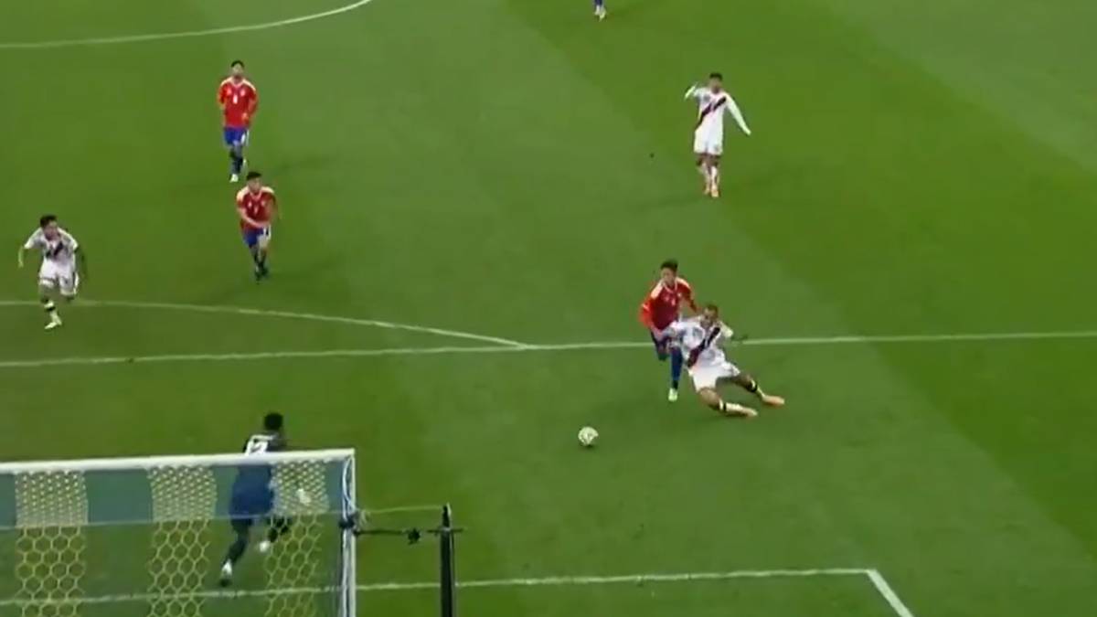 Tras una mala salida en el fondo, Iván Román cometió infracción, vio la cartulina roja y la Bicolor tiene la chance desde los 12 pasos de romper el cero.