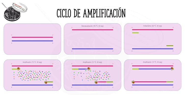 El siguiente momento crítico se produce durante la propia reacción de amplificación del fragmento. Se trata de la repetición sucesiva de 3 simples pasos, que conforman un ciclo de amplificación: