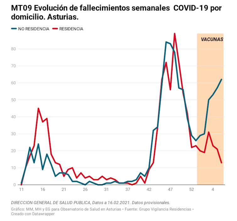 Pero no hay que irse hasta Israel. En Asturias el pasado día 15 de febrero se había sobrepasado la cifra de 2 000 personas fallecidas por covid-19 desde el inicio de la pandemia. Entre ellas, había una gran proporción de personas con domicilio en residencias de mayores, donde el impacto ha sido considerable. Sin embargo, en estos momentos la situación comienza a estar relativamente controlada gracias a los esfuerzos vacunales dirigidos específicamente a las personas residentes y trabajadores que los atienden.