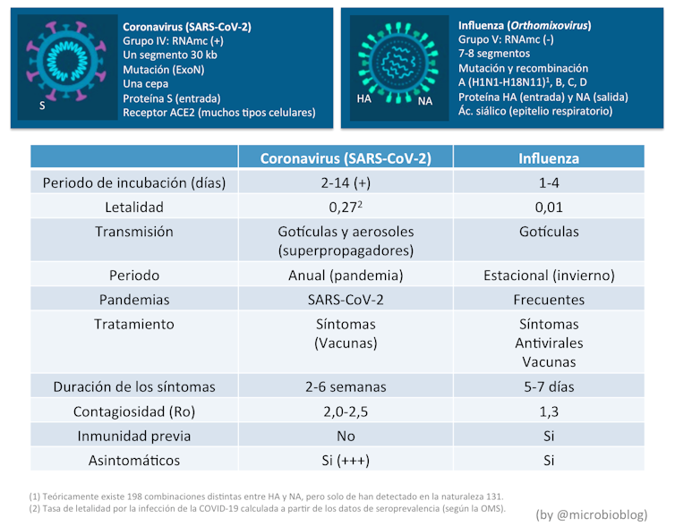Es muy probable que el menor periodo de incubación de la gripe, la existencia de inmunidad previa, la intensa campaña de vacunación de este año, las medidas de confinamiento, disminución de viajes, uso de mascarilla, higiene y distanciamiento social hayan tenido un mayor efecto en disminuir la transmisión de este virus. Por el contrario, en la transmisión del coronavirus además influyen mucho más el efecto de los aerosoles, el papel de los superpropagadores y los asintomáticos.