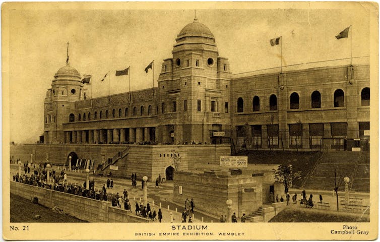 Grabado del Estadio de Wembley durante la Expo Universal de 1924.