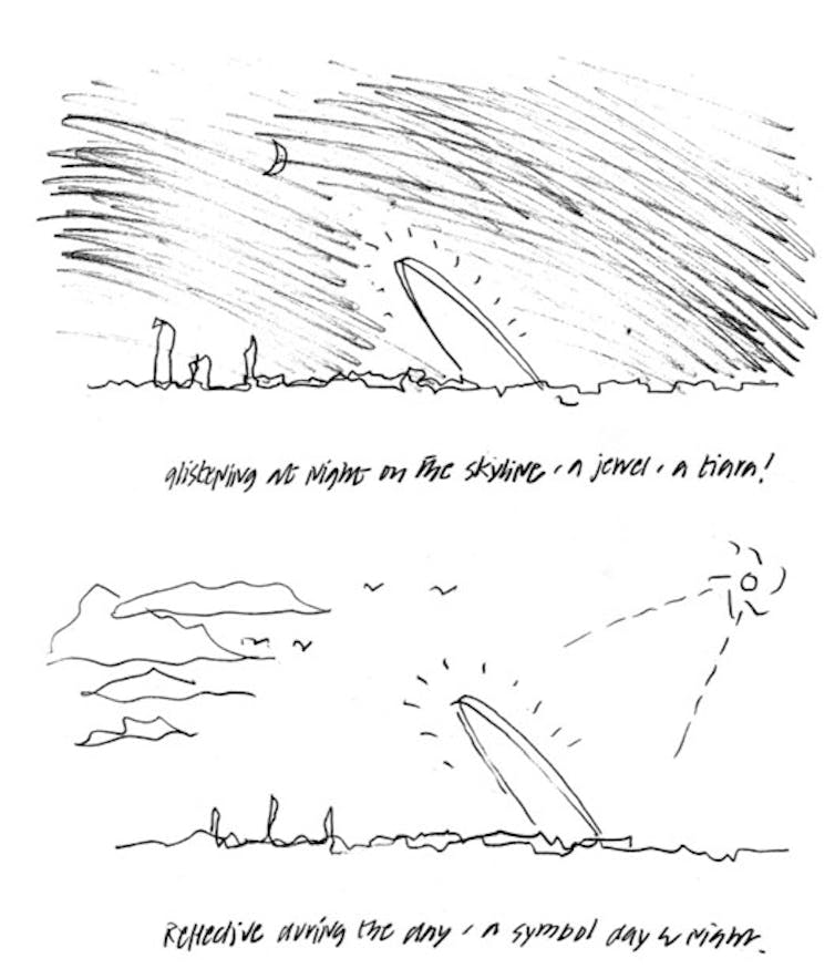 Croquis del proyecto explicando el concepto de la ‘Tiara’