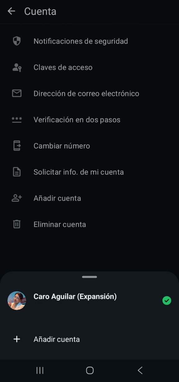 Usa dos cuentas simultáneamente en WhatsApp Con frecuencia, las personas tienen dos cuentas de WhatsApp, una personal y otra laboral, y contestar en ambas suele ser complicado o al menos molesto, si se tiene dos teléfonos. En la versión Web, puedes abrir ambas cuentas desde tu navegador. 1. Abre una nueva pestaña en modo incógnito y accede a WhatsApp Web. 2. El sitio te permitirá acceder a una nueva cuenta a través del código QR. 3. Navega en tu segunda cuenta, sin necesidad de cerrar la anterior. Desde la aplicación móvil también hay posibilidad de tener dos cuentas, solo es necesario que tu teléfono tenga opción de aceptar varias SIM o eSIM, o autorizar la otra cuenta desde tu app. 1. Abre la aplicación de WhatsApp y ve al menú de la esquina superior derecha. Selecciona ‘Ajustes’. 2. Da clic en ‘Cuenta’ y busca la opción de ‘Añadir cuenta’. 3. Acepta la Política de Privacidad y Condiciones de servicio para continuar. 4. Escribe el número que quieras agregar para conectarla. 5. Escribe el código y escribe tu nombre de usuario. Es posible quitar la cuenta para solo tener una de nuevo.