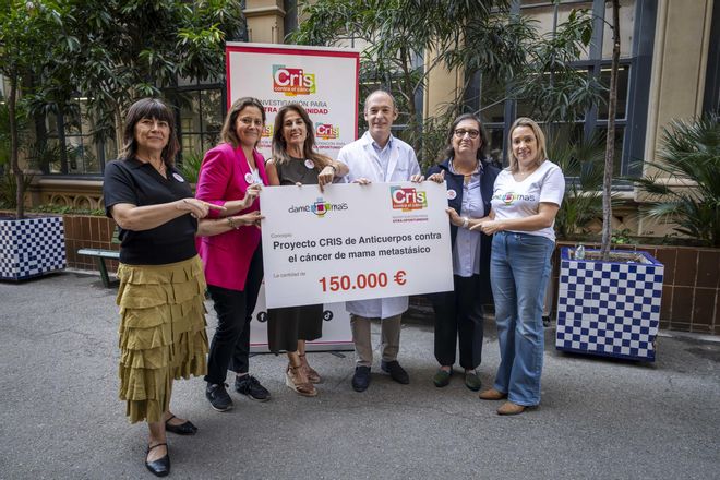 La Fundación CRIS Contra el Cáncer, junto con un grupo de mujeres pacientes de cáncer de mama metastásico, ha entregado este martes 150.000 euros para financiar una investigación de una terapia pionera contra el cáncer de mama metastásico HR+/HER2, que se llevará a cabo en el Hospital Clínic de Barcelona. El dinero se ha recaudado a través de la campaña ‘Dame5Más’ de CRIS Contra el Cáncer, creado por mujeres que decidieron no esperar a que la solución viniera de fuera y se activaron para avanzar en nuevos tratamientos que permitan aumentar la esperanza de vida de este tipo de cáncer, sin cura y caracterizado por la extensión del tumor a otras partes del cuerpo.
