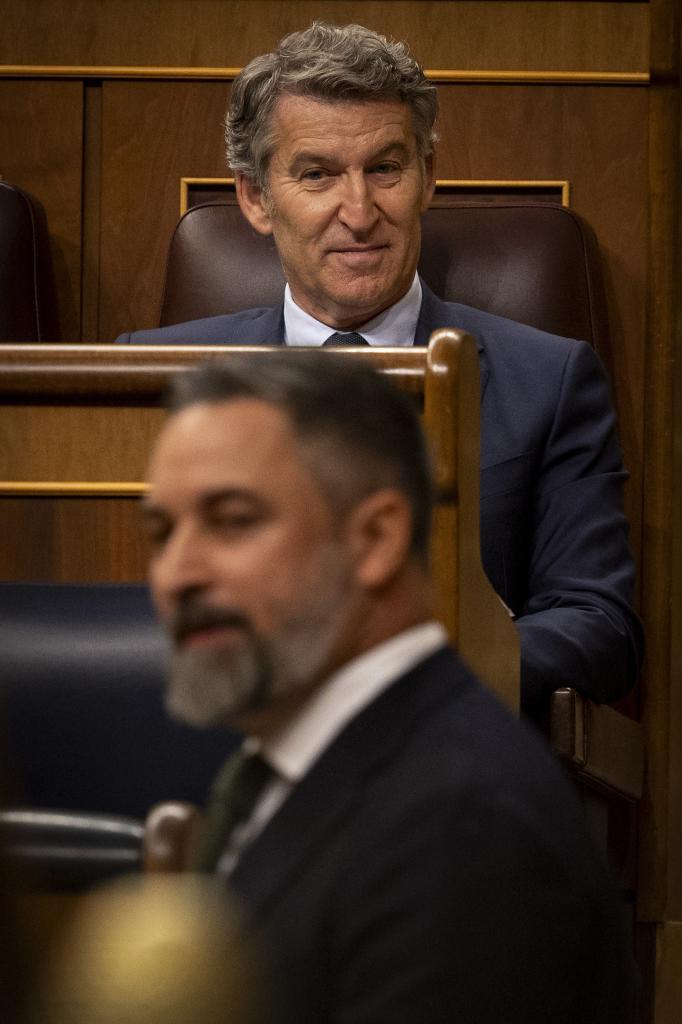Alberto Núñez Feijóo y Santiago Abascal, líderes de PP y Vox, en el Congreso.