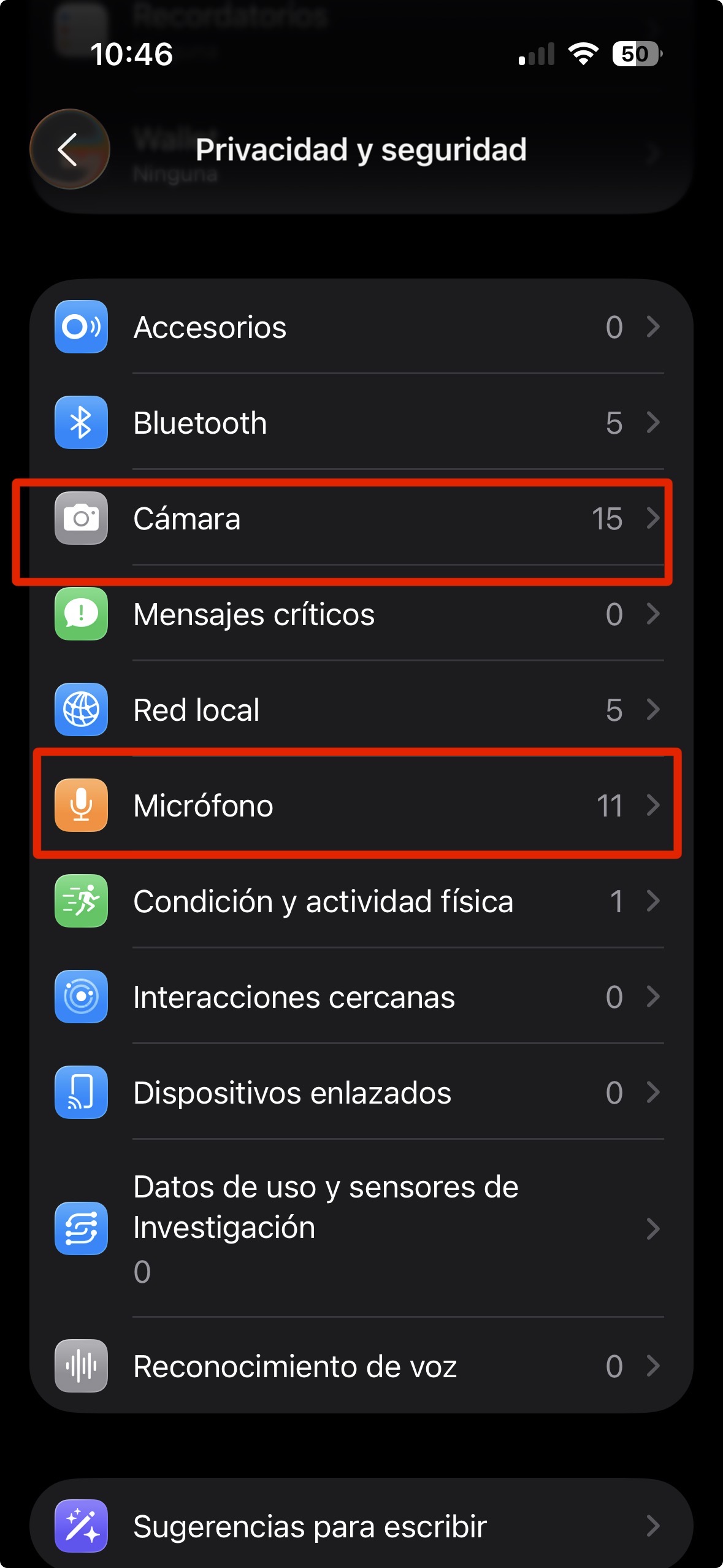 De acuerdo con la guía oficial de Apple, el punto verde indica que una aplicación está utilizando la cámara, mientras que el punto naranja aparece cuando una app accede al micrófono. Ambos funcionan como alertas automáticas visibles cada vez que un programa emplea estos recursos, incluso si no se abrió de manera directa. Los indicadores se muestran en la esquina superior del dispositivo mientras la cámara o el micrófono están activos. Para conocer qué aplicación realiza el acceso, basta con desplegar el Centro de control, donde el sistema muestra el nombre del programa responsable en la parte superior de la pantalla. Apple explica que estos avisos no significan necesariamente una actividad maliciosa, sino que reflejan el uso autorizado de sensores por parte de las aplicaciones que tienen permisos vigentes. Sin embargo, su función es permitir al usuario comprobar si dicho acceso es legítimo o si conviene modificar los permisos concedidos. Para revisar o limitar el acceso de las aplicaciones a estos recursos, se debe seguir este procedimiento: 1. Abre el menú Configuración. 2. Desliza hacia abajo hasta encontrar el apartado Privacidad y seguridad y selecciónalo. 3. Dentro del menú aparecerán las opciones Cámara y Micrófono; ahí puedes definir qué aplicaciones tienen permiso para usarlos. 4. En estas mismas secciones también se puede ajustar el uso de Bluetooth, red local y otros servicios del dispositivo. Si se identifica una aplicación desconocida o que no requiere acceder a estos sensores, lo recomendable es revocar su permiso o eliminarla del teléfono. Para saber qué aplicación está usando la cámara o el micrófono en tiempo real, basta con abrir el Centro de control, donde el sistema muestra un mensaje en la parte superior que indica qué app utiliza dichos recursos. De acuerdo con la empresa de ciberseguridad ESET, el acceso indebido a la cámara o al micrófono puede deberse a un spyware, un tipo de software que permite a un tercero vigilar el dispositivo o duplicar su pantalla sin autorización. Una primera señal es el encendido autónomo de la cámara o mensajes que indican que otra aplicación intenta utilizarla. Otras evidencias son la aparición de fotos o videos desconocidos, el consumo excesivo de batería o el sobrecalentamiento del dispositivo. Un aumento inusual en el uso de datos móviles, el bloqueo de aplicaciones o el encendido repentino de la pantalla también pueden revelar procesos ocultos. La presencia de nuevas aplicaciones no reconocidas o instaladas sin intervención del usuario es otro síntoma de posible espionaje. Una medida básica consiste en revisar periódicamente los permisos concedidos y revocar los que no sean necesarios. También es recomendable mantener el sistema y las aplicaciones actualizados, ya que las versiones recientes corrigen vulnerabilidades aprovechadas por programas espía. ESET sugiere instalar software de seguridad confiable capaz de detectar y eliminar spyware, evitar descargas desde fuentes no oficiales y no realizar jailbreak, práctica que debilita la protección del sistema operativo. Para mayor resguardo, se pueden usar métodos de autenticación seguros, como PIN complejos o biometría, y cubrir físicamente la cámara cuando no se utilice. Otras medidas incluyen evitar redes Wi-Fi públicas no seguras y desconfiar de enlaces o correos electrónicos sospechosos que puedan instalar malware. Si se sospecha que la cámara o el micrófono han sido comprometidos, se recomienda realizar un escaneo completo con un software de seguridad para eliminar posibles amenazas. También es importante desinstalar aplicaciones desconocidas y revocar permisos innecesarios desde la configuración del dispositivo. Actualizar el sistema operativo y las aplicaciones ayuda a cerrar posibles brechas de seguridad. Si el problema persiste, puede ser necesario restablecer el equipo a valores de fábrica o consultar directamente al fabricante. El especialista Ondrej Kubovič, de ESET, advirtió que “tener una cámara en el bolsillo es muy práctico para distintos usos personales y profesionales, pero también la convierte en un objetivo atractivo para los atacantes”. Añadió que “los cibercriminales comunes e incluso acosadores pueden emplear herramientas como stalkerware o malware financiero como SpyLoan para espiar a las víctimas o recolectar material comprometedor”.