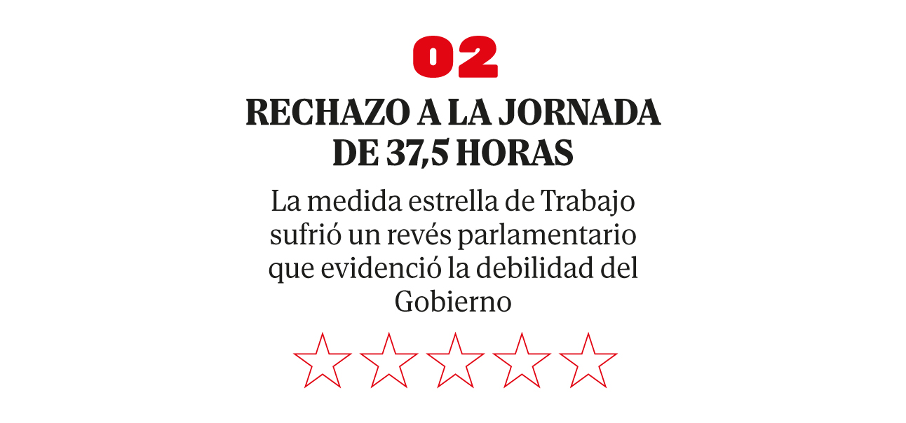 La primera página del programa de Sumar para el 23-J anticipaba que «en 2024 se establecerá por ley una jornada laboral máxima de 37,5 horas y se abrirá un proceso de diálogo social para seguir reduciendo la jornada hasta alcanzar las 32 horas semanales». Si bien la titular de Trabajo puso empeño en materializar la primera etapa de esta promesa –pasar de las 40 horas a 37,5–, el pasado septiembre se dio de bruces con el Congreso, que rechazó la propuesta por 178 votos en contra y 170 a favor.
