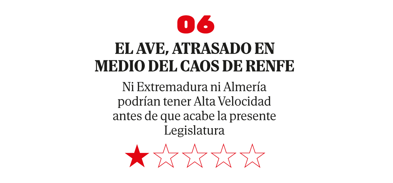 El AVE, antes un emblema, ha perdido prestigio. El presidente prometió llevar la Alta Velocidad a Asturias en 2023 y a Almería en 2026. Si bien cumplió con la primera, la provincia almeriense aún no tiene fecha oficial.