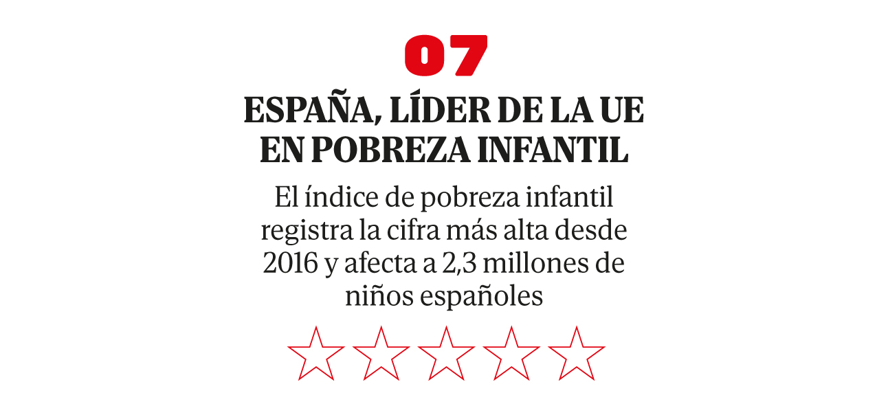 Sánchez calificó su anterior mandato como «la legislatura de la infancia» y aseguró que en 2021 «la pobreza en la infancia había descendido hasta niveles previos al Covid-19«. En realidad, ese año, el 28,9% de los menores vivían en riesgo de pobreza, frente al 27,4% de 2019. Lejos de mejorar, la situación empeora. Según Funcas, en 2024 España se convierte en el país con mayor riesgo de pobreza infantil de la Unión Europea, con un 29,2%, casi diez puntos por encima de la media comunitaria (19,3%), seguida de Bulgaria (28,2%) y Rumanía (26,2%). Son cifras no vistas desde 2016.