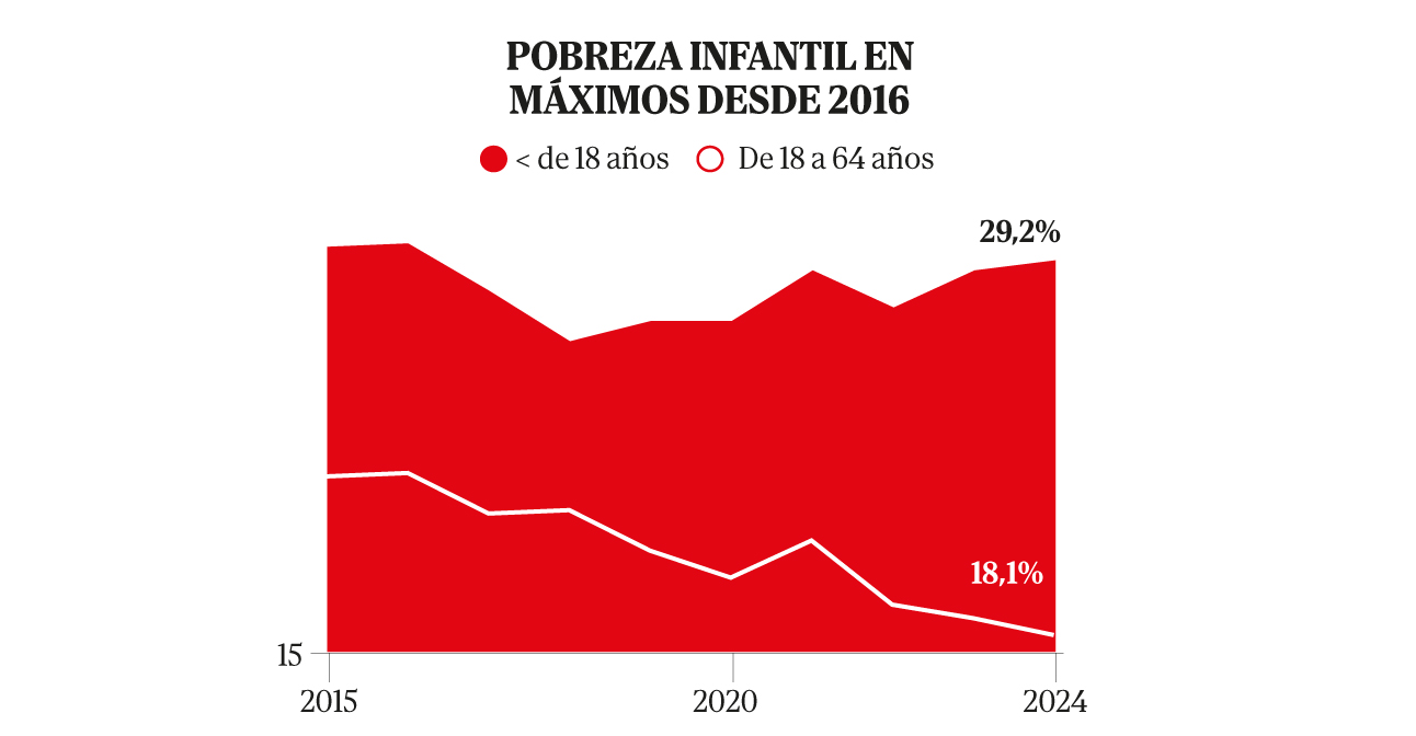 El último informe de la Red Europea de Lucha contra la Pobreza atribuye este aumento a que las familias con menos recursos no han mejorado sus condiciones de vida: las rentas medias de los menores crecen un 2,8%, mientras que el umbral de pobreza lo hace en el 5,4%.