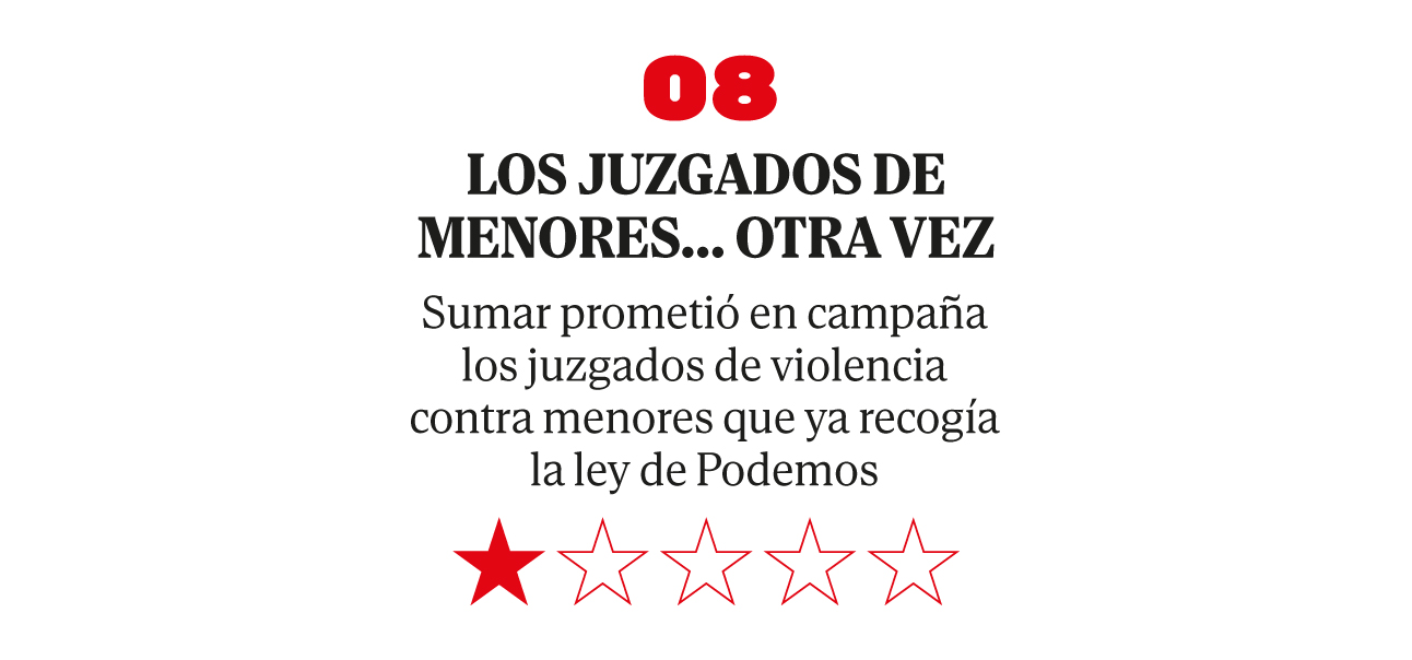 El 23-J, Sumar prometió crear fiscalías y juzgados especializados, algo que la ley ya exigía. En junio de 2025, el Gobierno aprobó un Real Decreto que sólo establece tres secciones judiciales –Madrid, Barcelona y Málaga–, cada una con una plaza.
