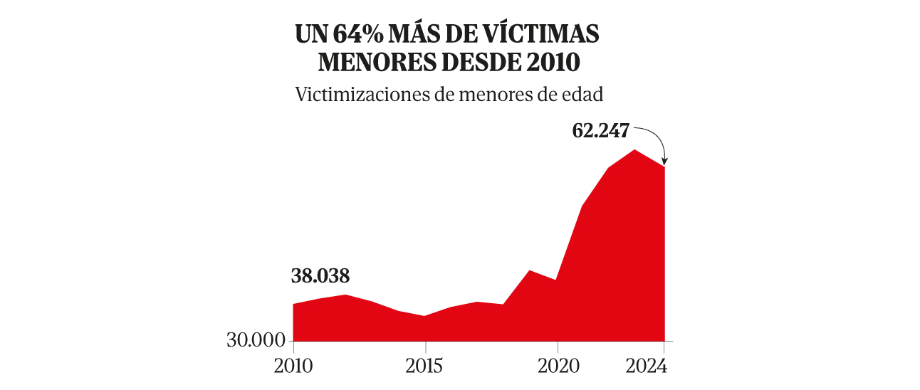 Mientras tanto, el número de denuncias en las que un menor fue víctima en 2024 (62.247) había aumentado un 63,6% respecto a 2010. Desde Save the Children critican que la respuesta es insuficiente y muy por debajo de lo que exige la ley, cuatro años después de que entrase en vigor la mencionada Ley.