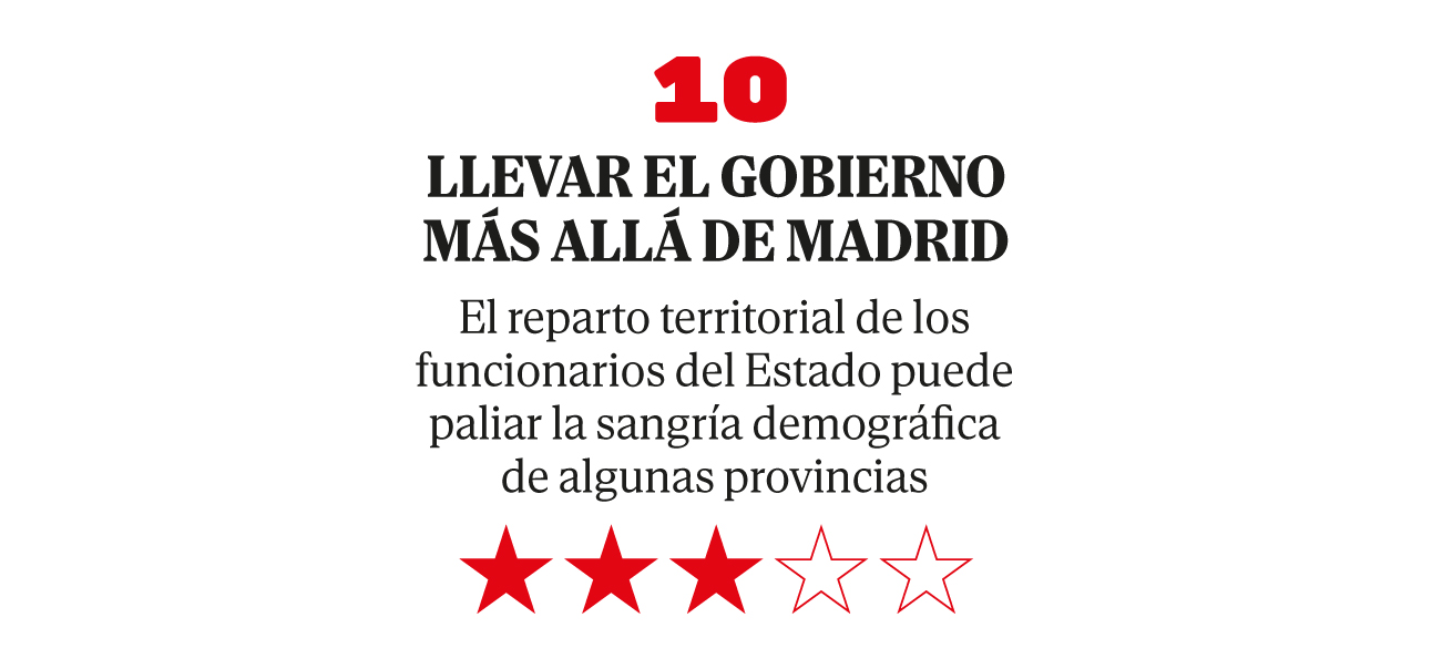 En el haber: se han creado dos Agencias Estatales nuevas, que se han instalado en La Coruña y Sevilla. Además, cinco provincias en riesgo de despoblación han aumentado sus efectivos por encima del 5%, en especial Soria y Salamanca.