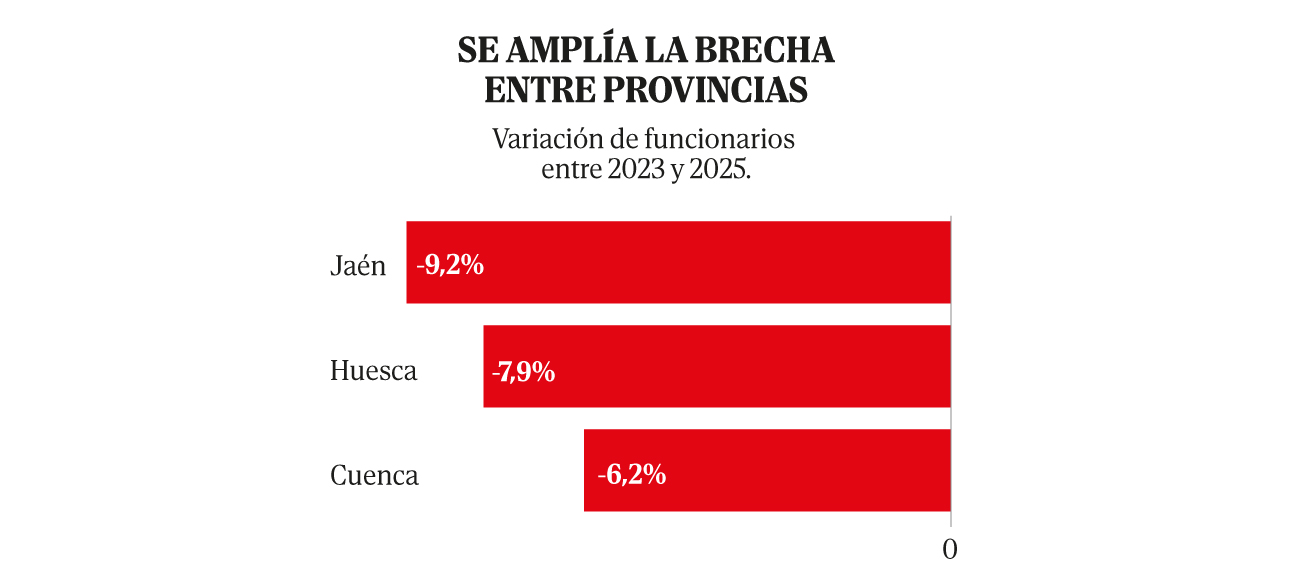 En el debe: en otras provincias deprimidas como Cuenca, Huesca o Jaén, la AGE ha perdido más de un 6% de funcionarios.