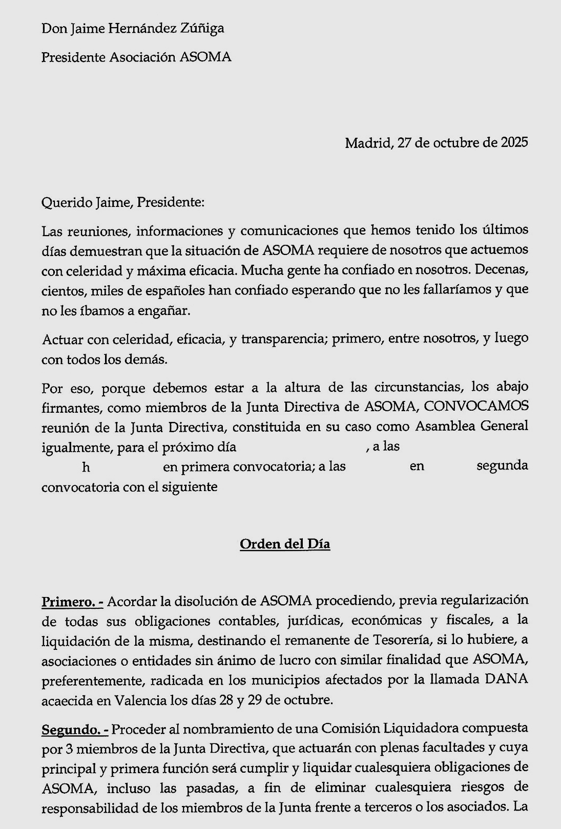 SOBRE LA MESA, DISOLVER LA ASOCIACIÓN.