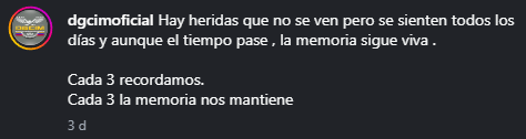 «Hay heridas que no se ven, pero se sienten todos los días y, aunque el tiempo pase, la memoria sigue viva. Cada 3 recordamos. Cada 3 la memoria nos mantiene», expresó la Dgcim.