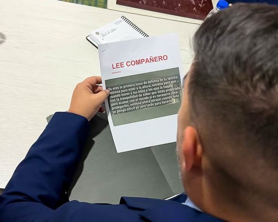 «LEE COMPAÑERO: Tú eres la primera línea de defensa de tu familia, entrena para estar a la altura, entrena para que cuando mires a tus hijos a los ojos lo hagas con la tranquilidad de saber que está preparado para acabar con el mundo si es necesario, para protegerlos, entrena ahora porque cuando todo se ponga difícil ya será tarde para hacerlo», reza el escrito.