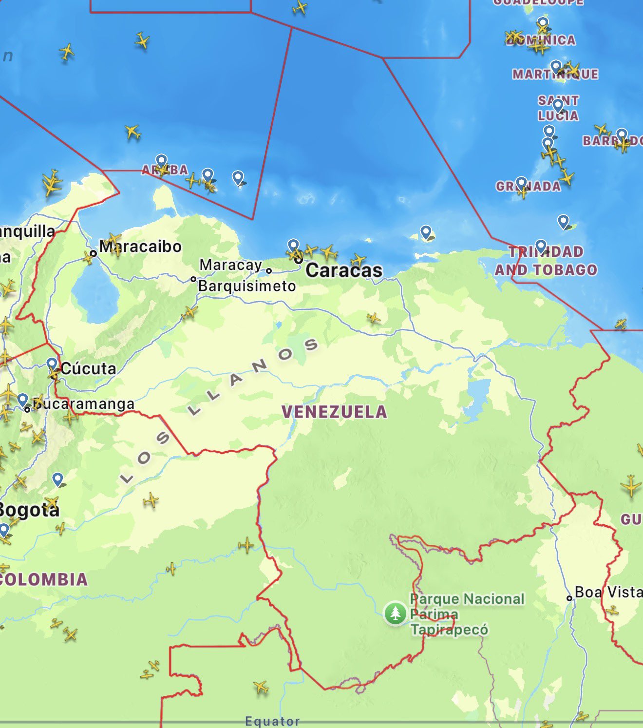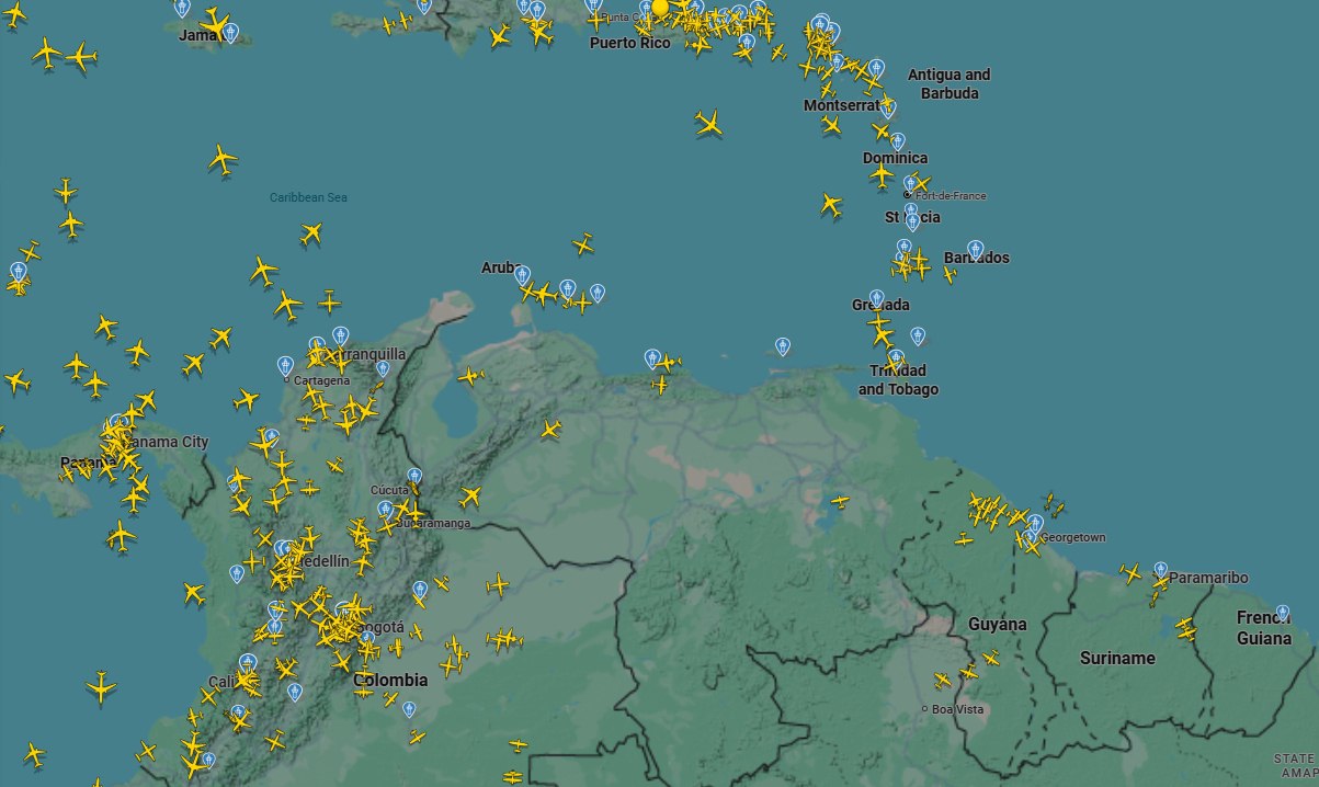 Así luce en tiempo real el espacio aéreo venezolano tras la advertencia de Trump