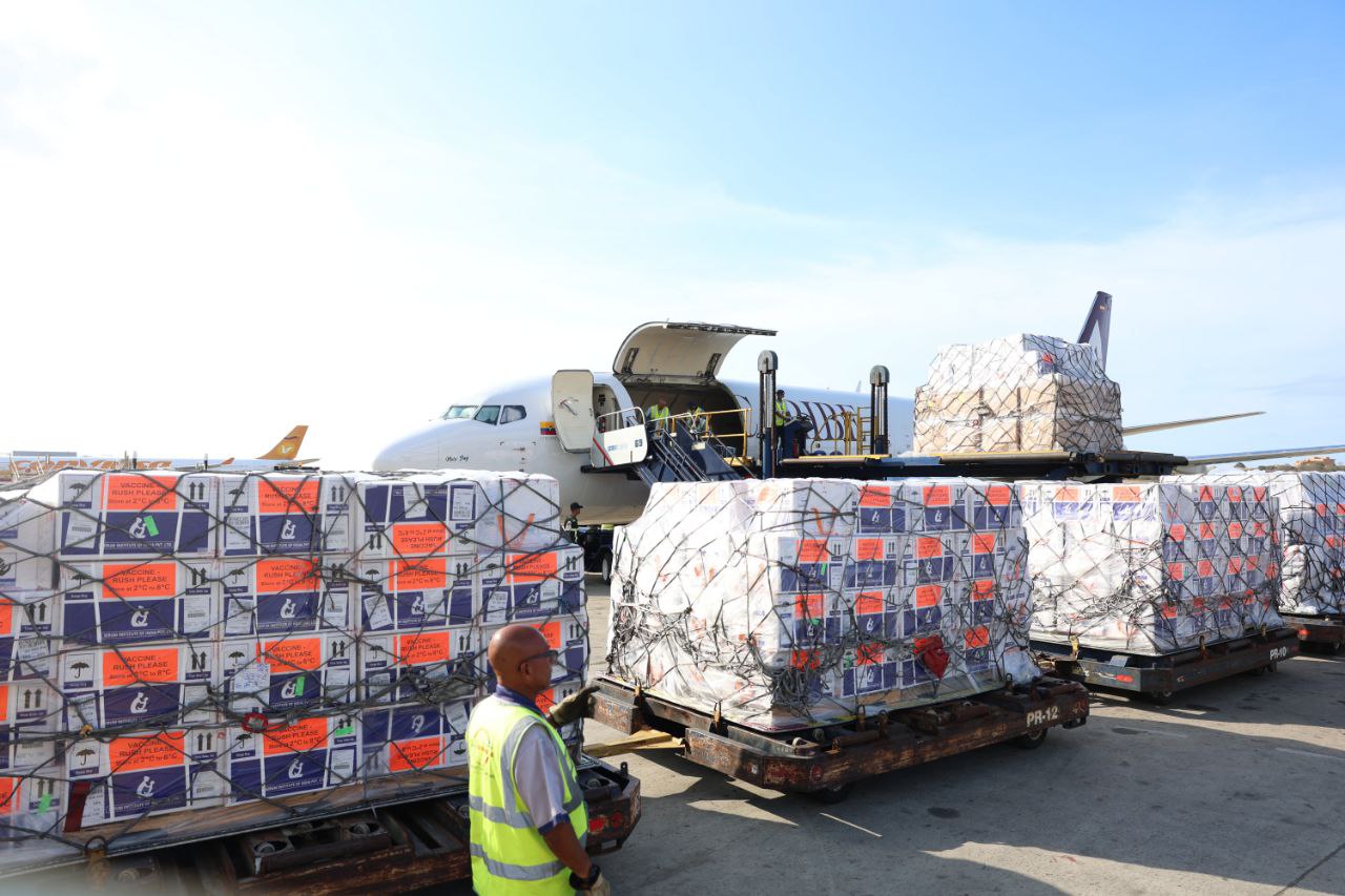 Venezuela recibió este domingo un total de 1.285.000 dosis de distintos tipos de vacunas procedentes de la India en dos cargamentos, informó el régimen de Nicolás Maduro.