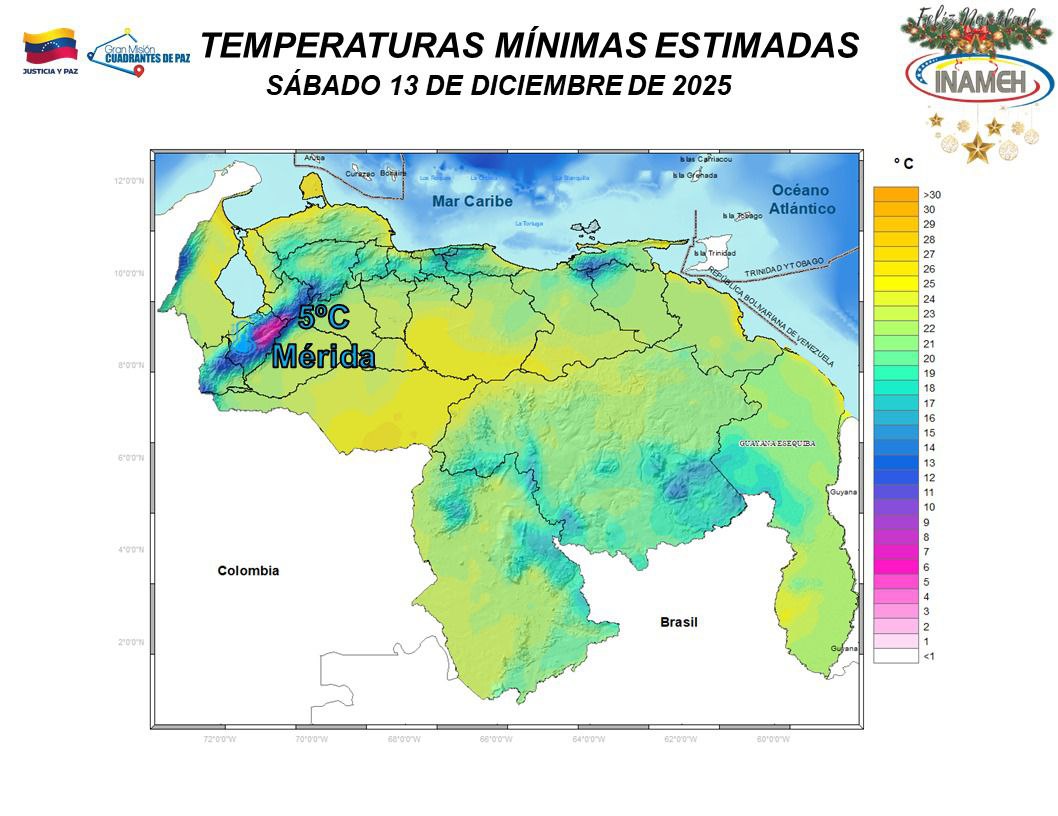 Venezuela amaneció este sábado 13 de diciembre con cielo parcialmente nublado en gran parte de su territorio, de acuerdo con el más reciente reporte del Instituto Nacional de Meteorología e Hidrología (Inameh).