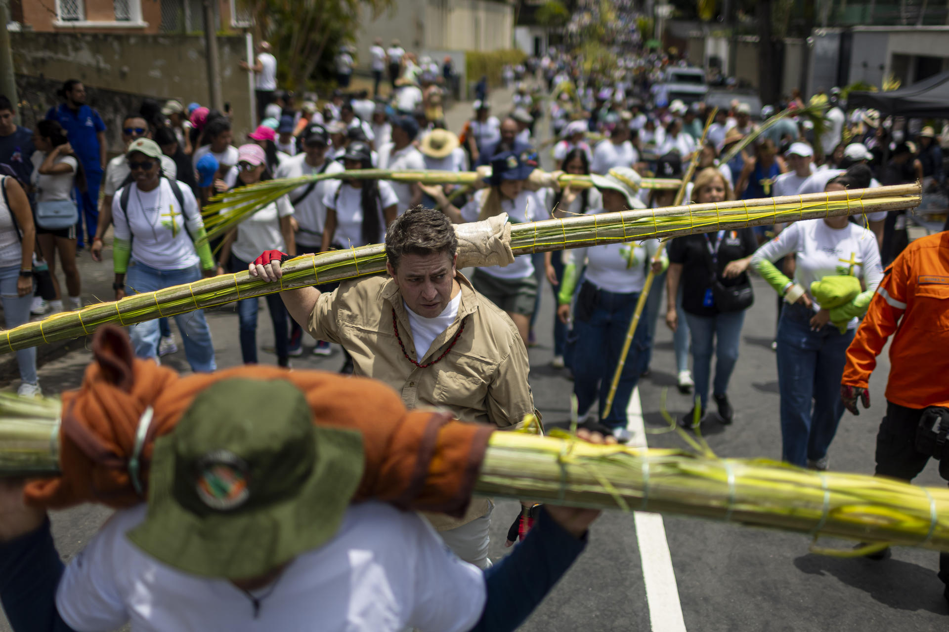 Entre 700 y 800 ‘palmeros’ bajaron este sábado del principal cerro de Caracas, llamado Waraira Repano y conocido como Ávila, cargando en sus hombros cientos de palmas amarradas para su entrega en iglesias durante el Domingo de Ramos de la Semana Santa, siguiendo una tradición iniciada en el siglo XVIII.