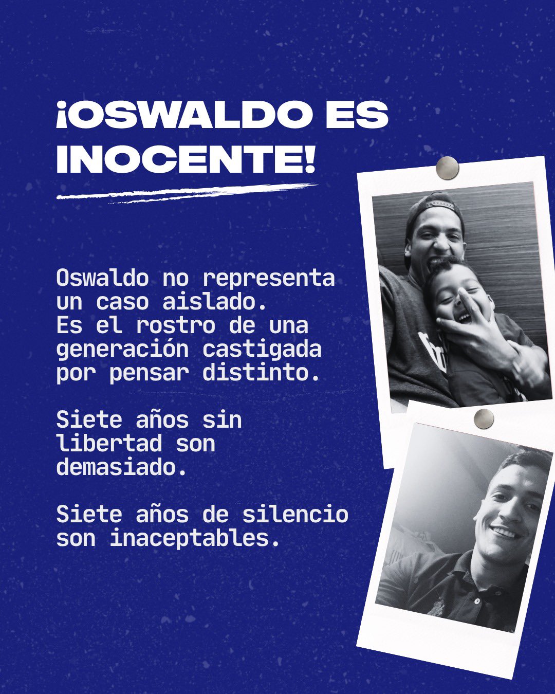 «Siete años de silencio son inaceptables», dijo el Comité, subrayando que Oswaldo no representa un caso aislado, sino el rostro de una generación castigada por pensar diferente.