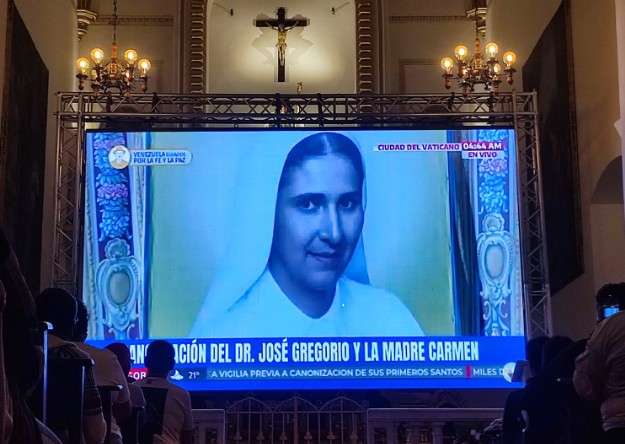 El cardenal Marcelo Semeraro expone la biografÃa de la Madre Carmen Rendiles ante el papa León XIV en el Vaticano en la misa de canonización.