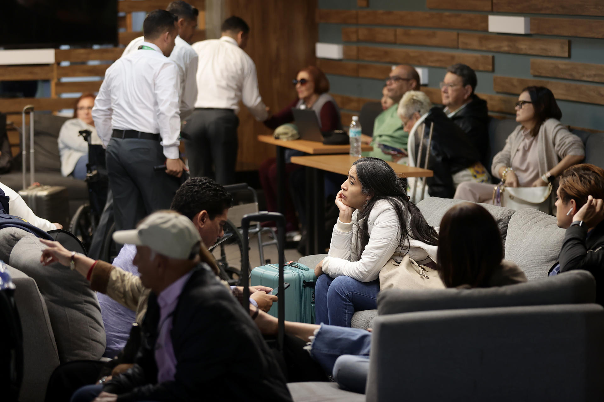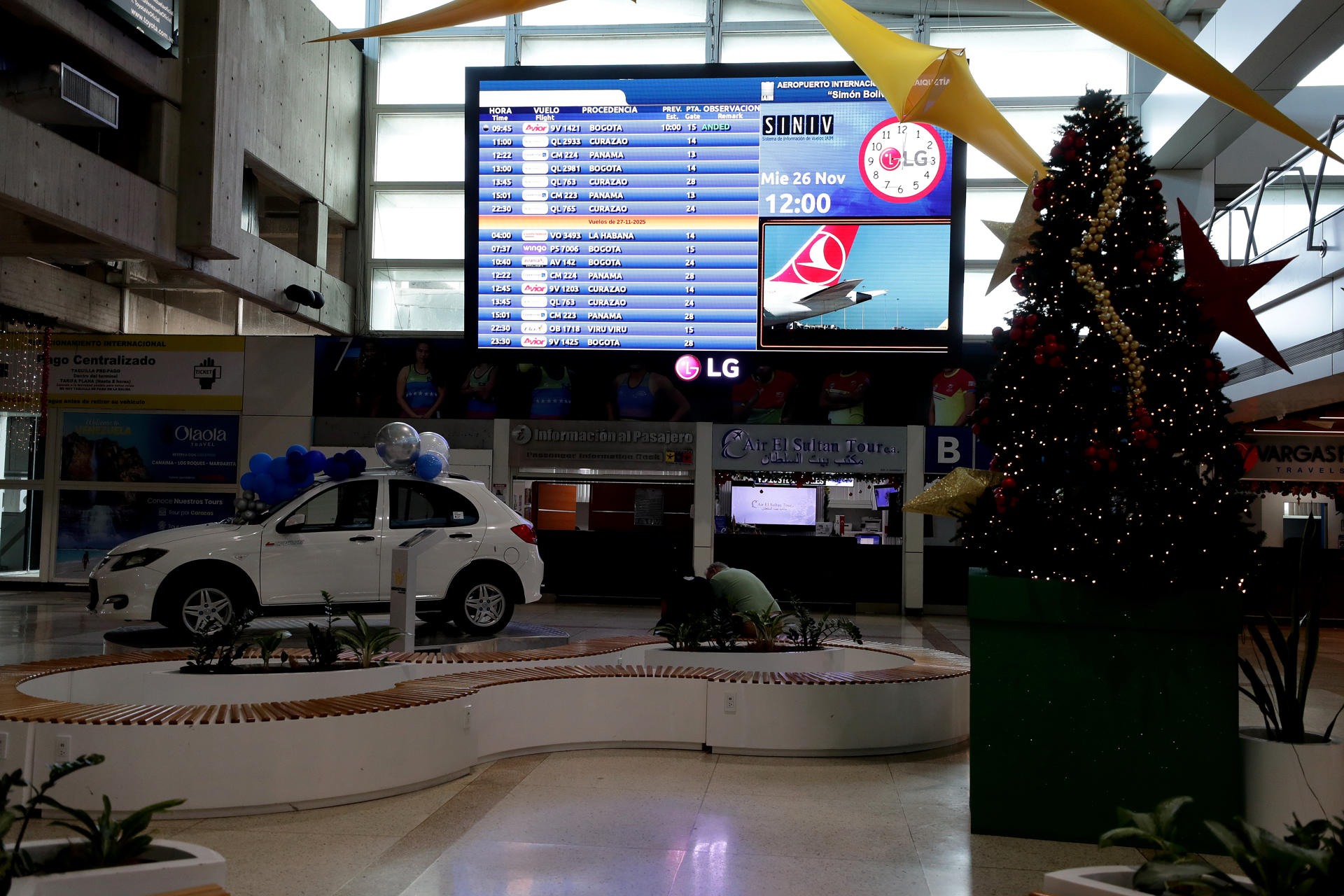 AME2994. MAIQUETIA (VENEZUELA), 26/11/2025.- Personas esperan para abordar un vuelo este miércoles, en el aeropuerto internacional Simón Bolívar, que sirve a Caracas, en Maiquetía (Venezuela). El plazo de 48 horas que otorgó el Gobierno de Venezuela a las aerolíneas para que retomen sus operaciones en el país suramericano terminó sin que hasta el momento las autoridades hayan confirmado su decisión de revocar los permisos de "vuelo permanente" o hayan anunciado algún otro tipo de sanción. EFE/ Ronald Pena R