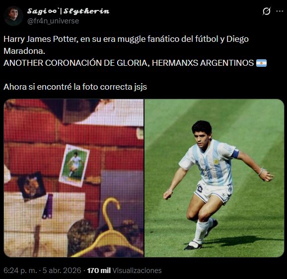 Fue en X donde un usuario se percató de que en una parte de «Harry Potter: El arte detrás de la magia» se ve durante aproximadamente un segundo una figurita de Diego Armando Maradona.