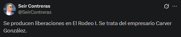 La noticia fue difundida por el periodista Seir Contreras a través de su cuenta en X, quien señaló que se están produciendo liberaciones en ese centro penitenciario.