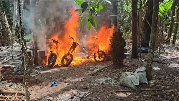 «Todo el material y equipo fueron incinerados en el lugar de los hechos, por servir de soporte logístico para la depredación del medio ambiente en las actividades de minería ilegal, prohibidas por el Estado venezolano», añadió.