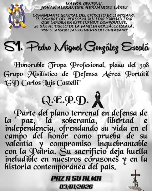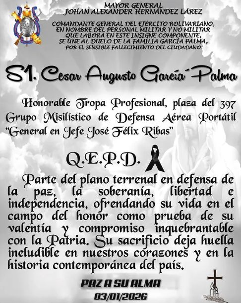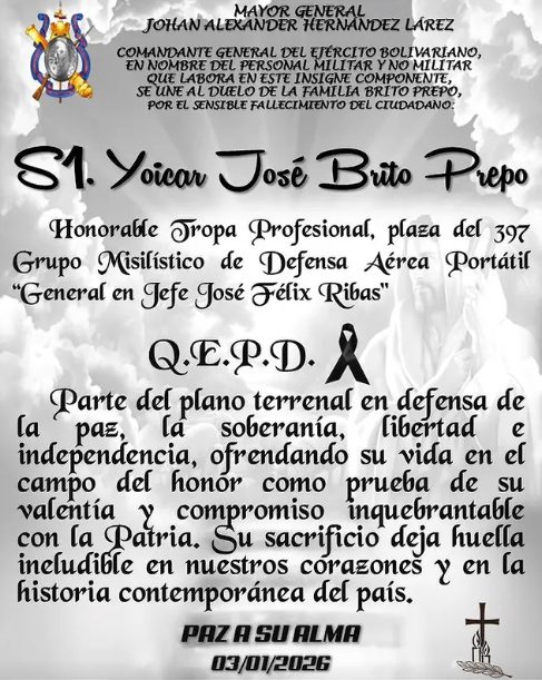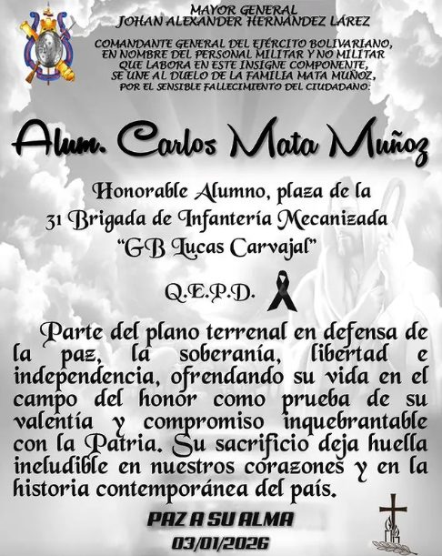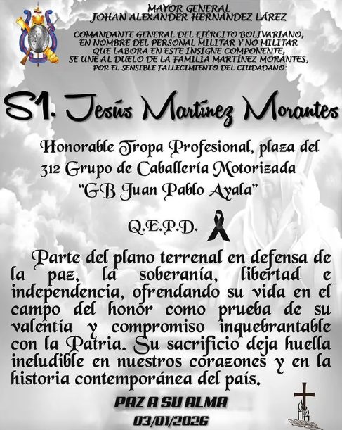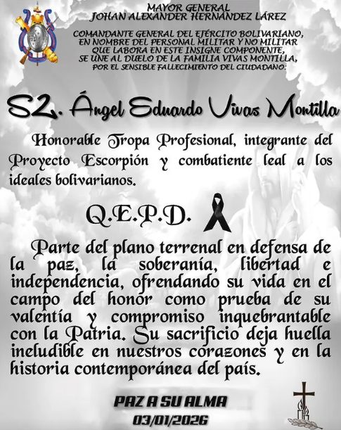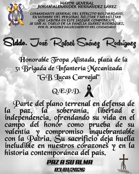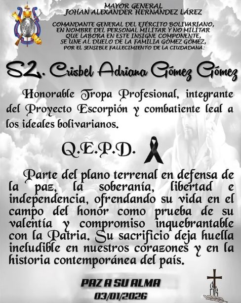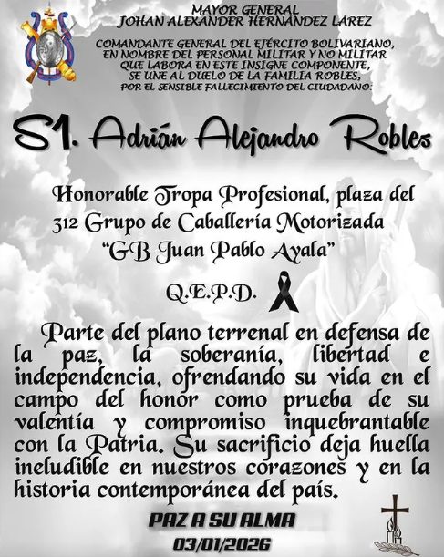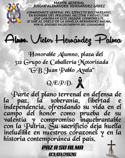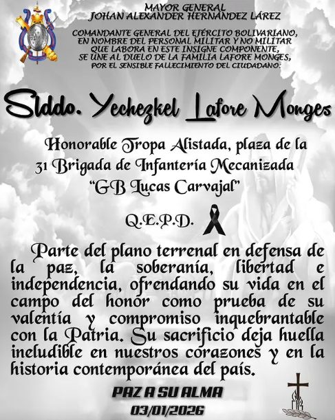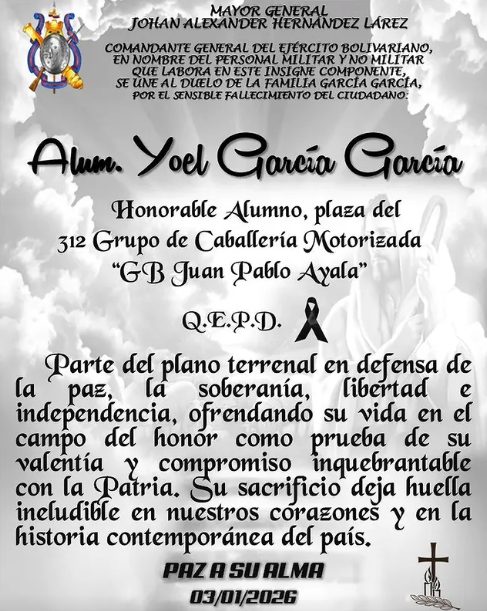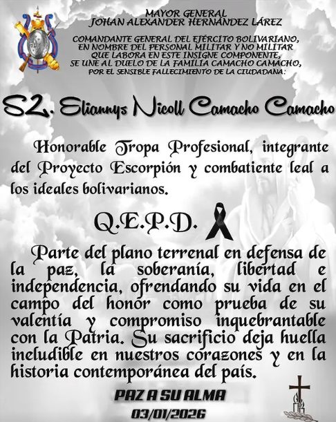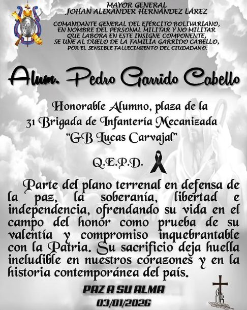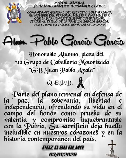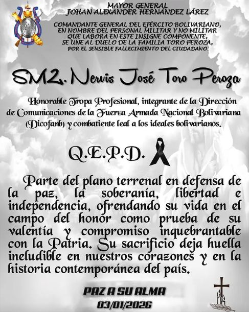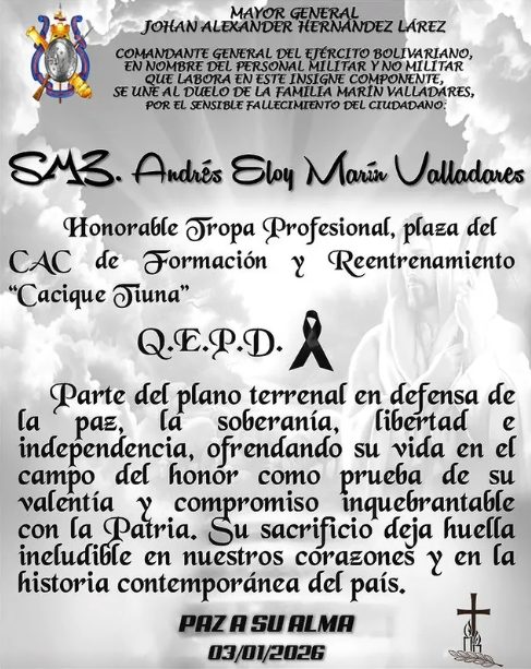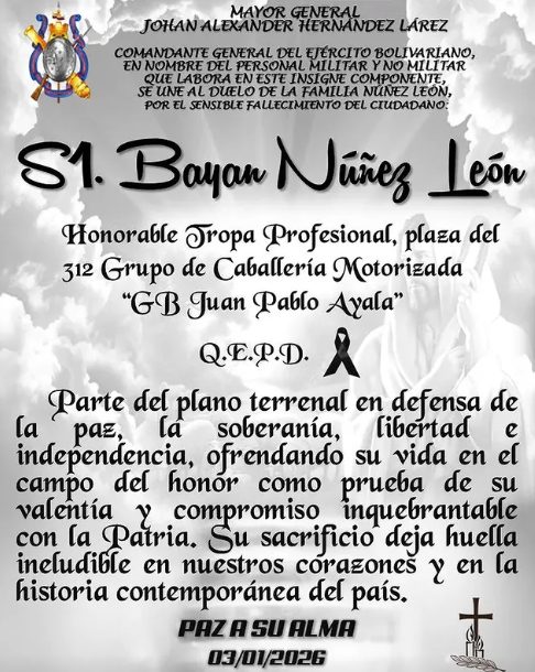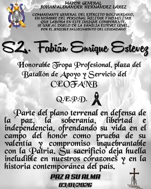 La Fuerza Armada Nacional Bolivariana (Fanb) publicó el pasado lunes los obituarios de los 23 uniformados caídos durante la captura de Nicolás Maduro, ordenada por el presidente estadounidense, Donald Trump.