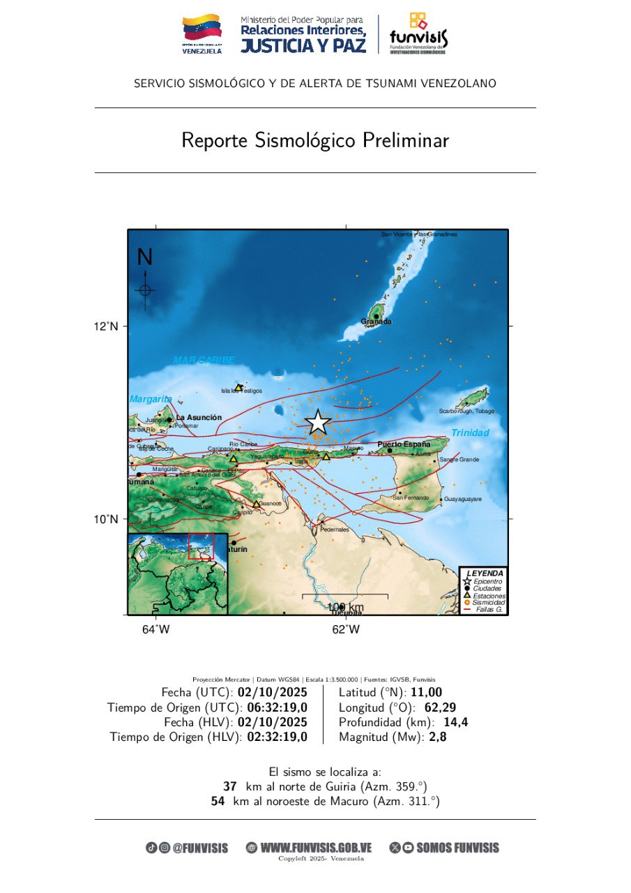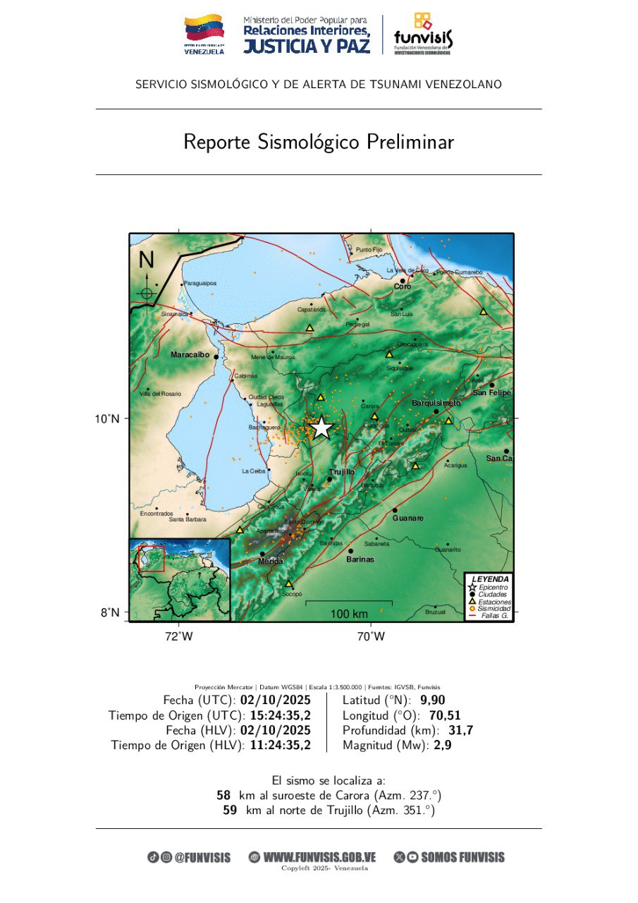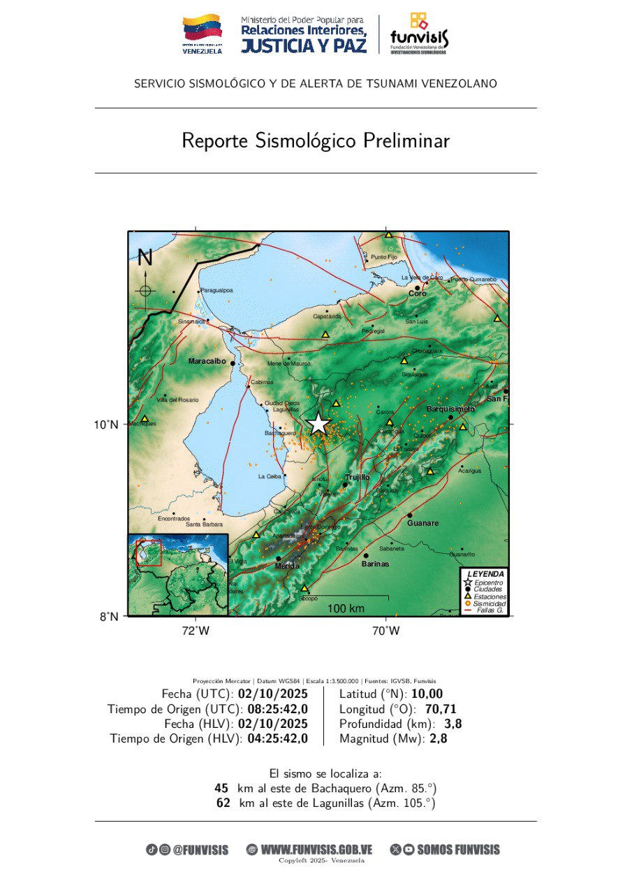 Este 2 de octubre, la Fundación Venezolana de Investigaciones Sismológicas (Funvisis) reportó actividad sísmica que se concentró en los estados Lara, Zulia y Sucre.