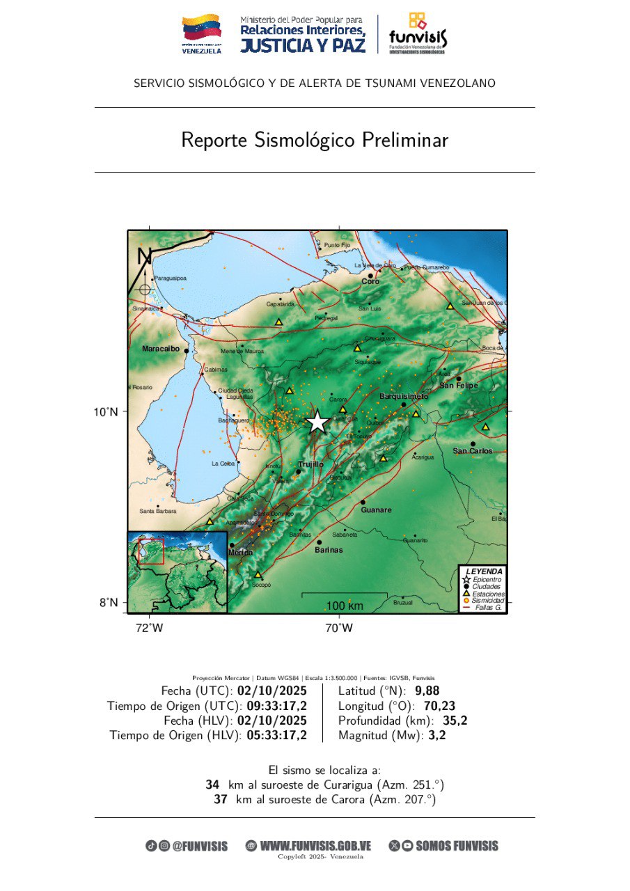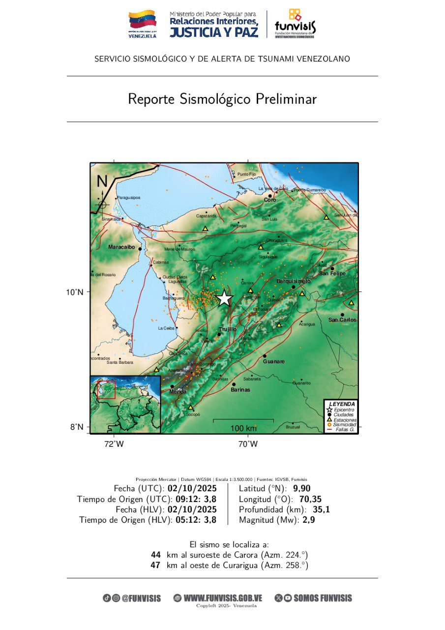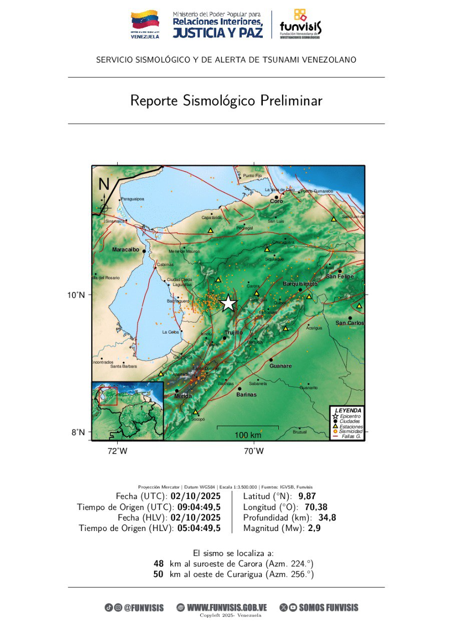 Este 2 de octubre, la Fundación Venezolana de Investigaciones Sismológicas (Funvisis) reportó actividad sísmica que se concentró en los estados Lara, Zulia y Sucre.