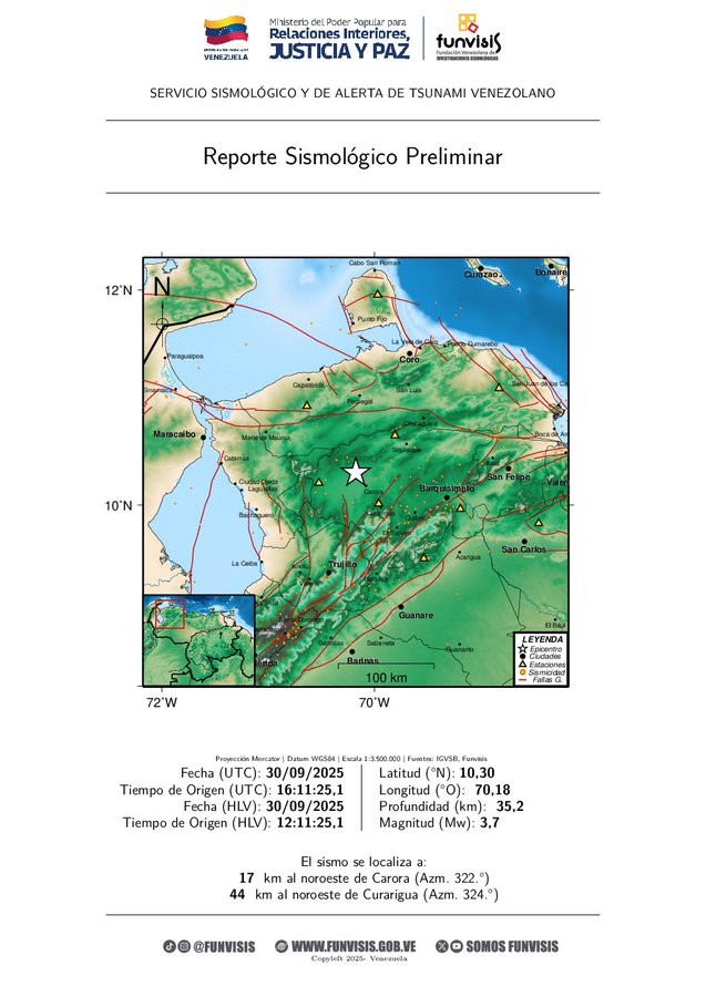 Funvisis reportó otro sismo de 3,7 al noroeste de Carora este #30Sep