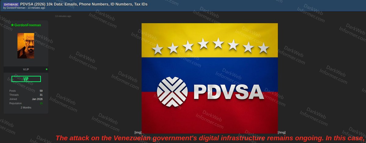 El alias “GordonFreeman” también ha sido señalado previamente por vulnerar plataformas del Seniat, lo que refuerza la preocupación sobre la exposición de información oficial.