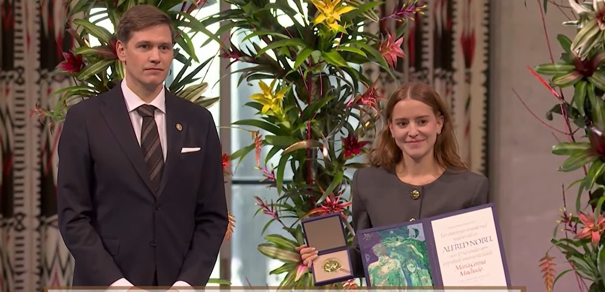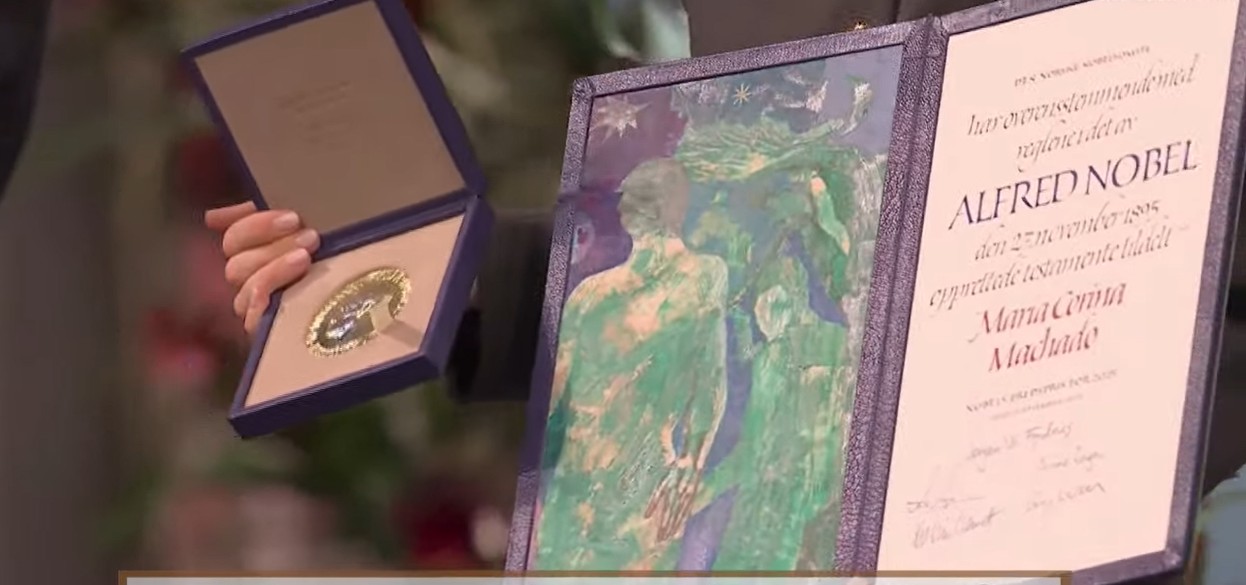 Ana Corina Sosa, hija de María Corina Machado, recibió este miércoles en el Ayuntamiento de Oslo el Nobel de la Paz en nombre de la opositora venezolana, que no ha podido viajar a Noruega a tiempo para recibir en persona el premio, aunque viajará igualmente a la capital noruega, según el Instituto Nobel. EFE