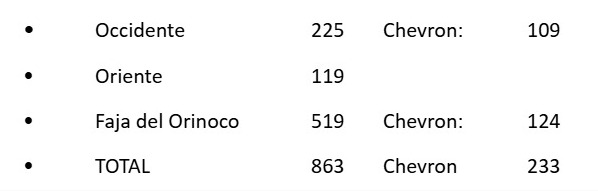 La producción de crudo durante la última semana promedió 863 mil barriles por día (863 Mbpd), distribuida geográficamente como sigue:
