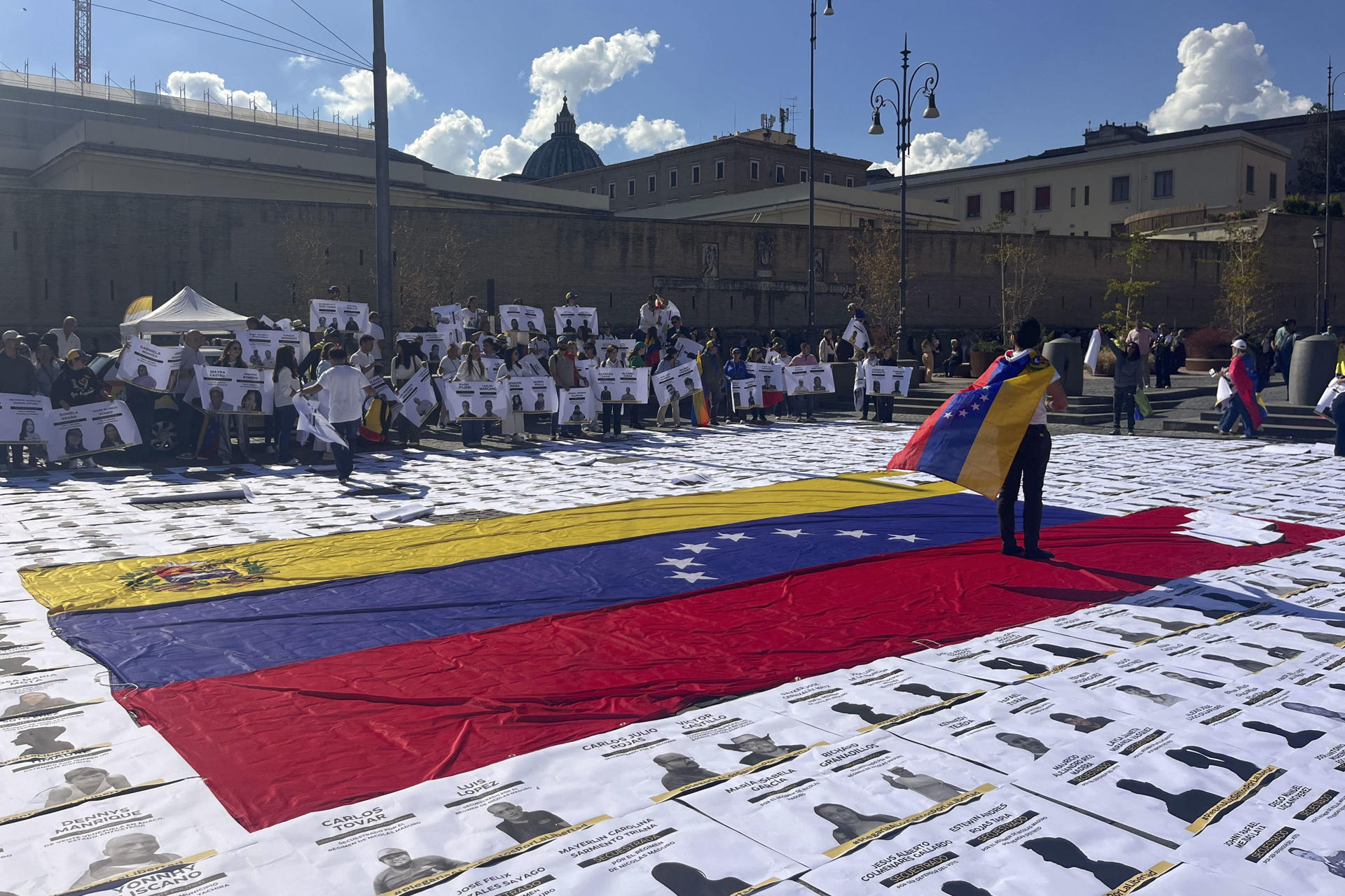 Por la mañana, decenas de venezolanos protestaron cerca del Vaticano exigiendo la liberación de presos políticos, bajo el lema «una canonización sin presos políticos» y cubrieron el suelo con fotografías de los detenidos.