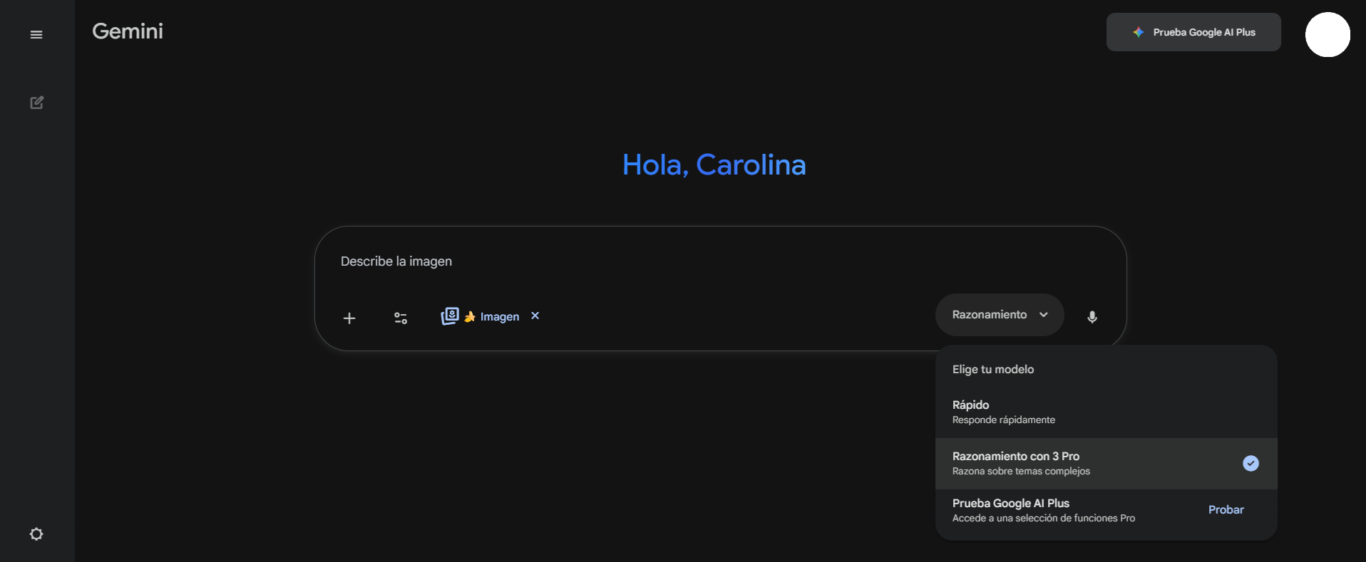 De acuerdo con Google, Nano Banana Pro está basada en el modelo de Gemini 3 (Gemini 3 Pro Image), el cual tiene un razonamiento más avanzado y conocimiento del mundo real para ser más efectivo. Además de crear imágenes, tiene puede generar contenido con datos, como infografías o diagramas a partir de notas. “Nano Banana Pro puede ayudarte a visualizar cualquier idea y diseñar lo que quieras, desde prototipos hasta la representación de datos como infografías o convertir notas escritas a mano en diagramas”, señaló la empresa de Alphabet. También puede conectarse al Buscador de Google para visualizar información en tiempo real como el clima o el resumen deportivo. Por otro lado, incluye mejoras en la representación de texto en diferentes idiomas. Es decir, genera texto nítido y legible para crear carteles, bocetos de storyboard, diagramas complejos o maquetas de productos detalladas, ya sea en el mismo idioma o adaptarlo a otros para mercados internacionales. Nano Banana está disponible desde varias herramientas de inteligencia artificial de Google. En Gemini, se requiere abrir una nueva conversación y seleccionar la función de ‘Imágenes’ del botón de Herramientas, y posteriormente dar clic en ‘Razonamiento con 3 Pro’. En una prueba realizada, la IA realizó cuatro resultados a creación de imágenes hasta señalar que se acabaron las respuestas de libre acceso. Para continuar, debía tener la versión de paga. En Google AI Studio, la opción está en el menú principal de la pantalla. Sin embargo, desde el inicio, la herramienta señala que solo está disponible para los usuarios de pago. En caso de no tener suscripción, se invita a agregar una clave API para acceder a las funciones avanzadas. En NoteebookLM, está disponible de manera secundaria en la sección de Studio, como ‘Infografía’. Esta opción no es la más adecuada para crear imágenes con prompts, a diferencia de las dos anteriores. Para aprender a usar a Nano Banana, sigue este tutorial con las instrucciones y consejos de prompts. Esta función es muy sencilla y accesible desde NoteebookLM, solo que puede demorar un par de minutos. 1. Accede a NotebookLM con tu cuenta de Google y crea un nuevo cuaderno. 2. En el menú de la izquierda, agrega la fuente de información para tu infografía. Puede ser un documento adjunto desde Drive o del ordenador, un link de navegador, un video de YouTube o texto. 3. Una vez se haya procesado la fuente o varias de ellas, ve a la sección de Studio de la derecha. Busca la opción de ‘Infografía’ del menú y da clic. 4. Espera a que termine de realizar la tarea y luego da clic. NotebookLM desplegará el resultado que puede ser calificado como Contenido adecuado o Contenido inadecuado. Además, están disponibles las opciones de Compartir y Descargar, encoger y cerrar la pestaña.