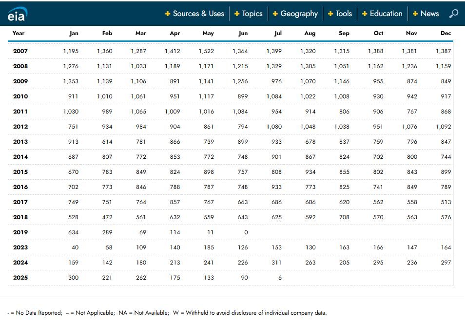 Los datos de julio publicados por la EIA muestran que Venezuela cayó hasta al puesto 36 en el ranking de las importaciones estadounidenses de crudo y derivados, desde el lugar 15 que ostentaba en junio. El podio del séptimo mes del año varió porque Brasil desplazó a Arabia Saudita en el tercer lugar. Así quedaron de la siguiente manera: compuesto por Canadá (4.597.000 bpd), México (431.000 bpd) y Brasil (325.000 bpd).